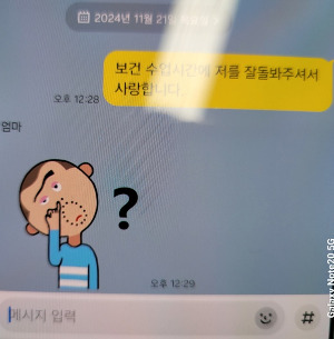 젤리 하나 받겠다고 학생들이 휴대폰을 켜고 양육자에게 메시지를 보내는 모습이 참 귀여웠다. 어떤 학생들은 양육자가 원래 근무 중에는 전화를 안 받는다고 말하기도 했다. 나는 그것은 운명이다고 어쩔 수 없다고 말했다. 메시지가 온 학생들은 자신에게 온 메시지를 친구들 앞에서 발표하고 하리보 젤리 하나를 받았다. 갑자스런 사랑고백에 물음표를 던지는 보호자들의 답변으로 교실은 다시 한번 웃음바다가 되었다.