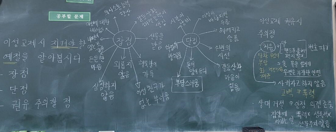 학생들의 이성교제 존중해 줘라. 이성교제는 인간을 성장시킨다. 이성교제의 시작은 존중이다.