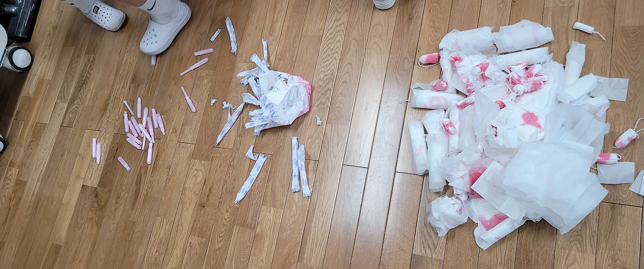 탐폰 실습이 끝나고 나는 탐폰도 월경대처럼 분리수거가 필요하다고 지도했다.