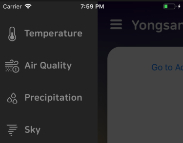 Setting 화면엔 about 페이지가 서브로 존재하고 add location 페이지도 서브로 존재한다.