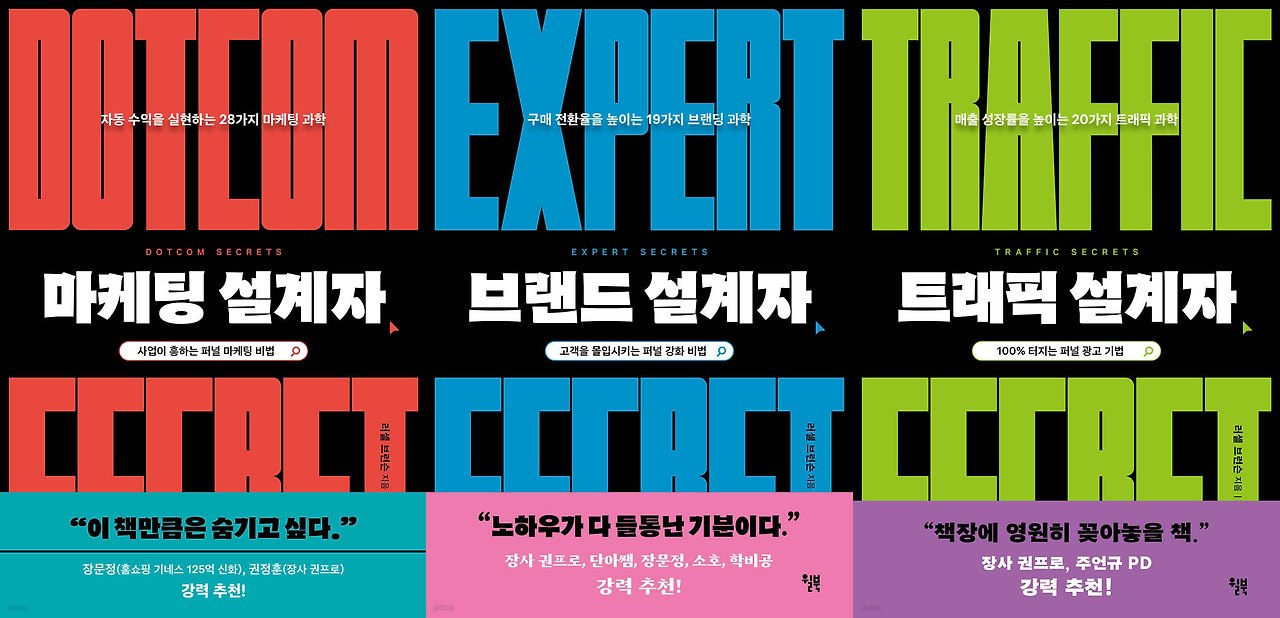 국내 최초로 퍼널 마케팅의 진정한 가치를 알려 극찬을 받은 시리즈로, 1000억원 규모의 마케팅 플랫폼 기업 ‘클릭퍼널스닷컴’의 설립자 러셀 브런슨이 쓴 시리즈 책이다. 책은 러셀 브런슨이 직접 실무에서 테스트하며 경험한 마케팅 전략을 담았다. 포화된 시장에서 소비자 심리에 대한 분석과 가치 상승 전략으로 판매의 전 과정을 하나의 자동화된 ‘마케팅 시스템’으로 설계하는 방법을 소개한다. 시리즈는 아직 출시하지 않은 ‘스토리 설계자’를 포함해 총 4권이다.