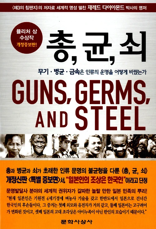 다이아몬드 교수의 한국판에 붙은 일본인의 유래 관련 글은 사족이고 본문의 논거와 다소 충돌된다. 그리고 최근 주식, 경제 전문가가 총,균,쇠를 투자의 길잡이로 소개하는데 이는 역사학자 출신이 과도한 뽕끼를 담은 것 밖에 안된다. 주식, 경제 전문가는 입으로 먹고 살지 말고 그냥 투자 수익율을 증명할 포트를 까면 된다.