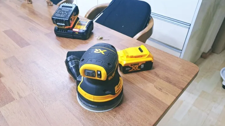 저렴하게 산 그라인더와 사포를 들고 꼼꼼히 칠을 벗겨내는 모습이,