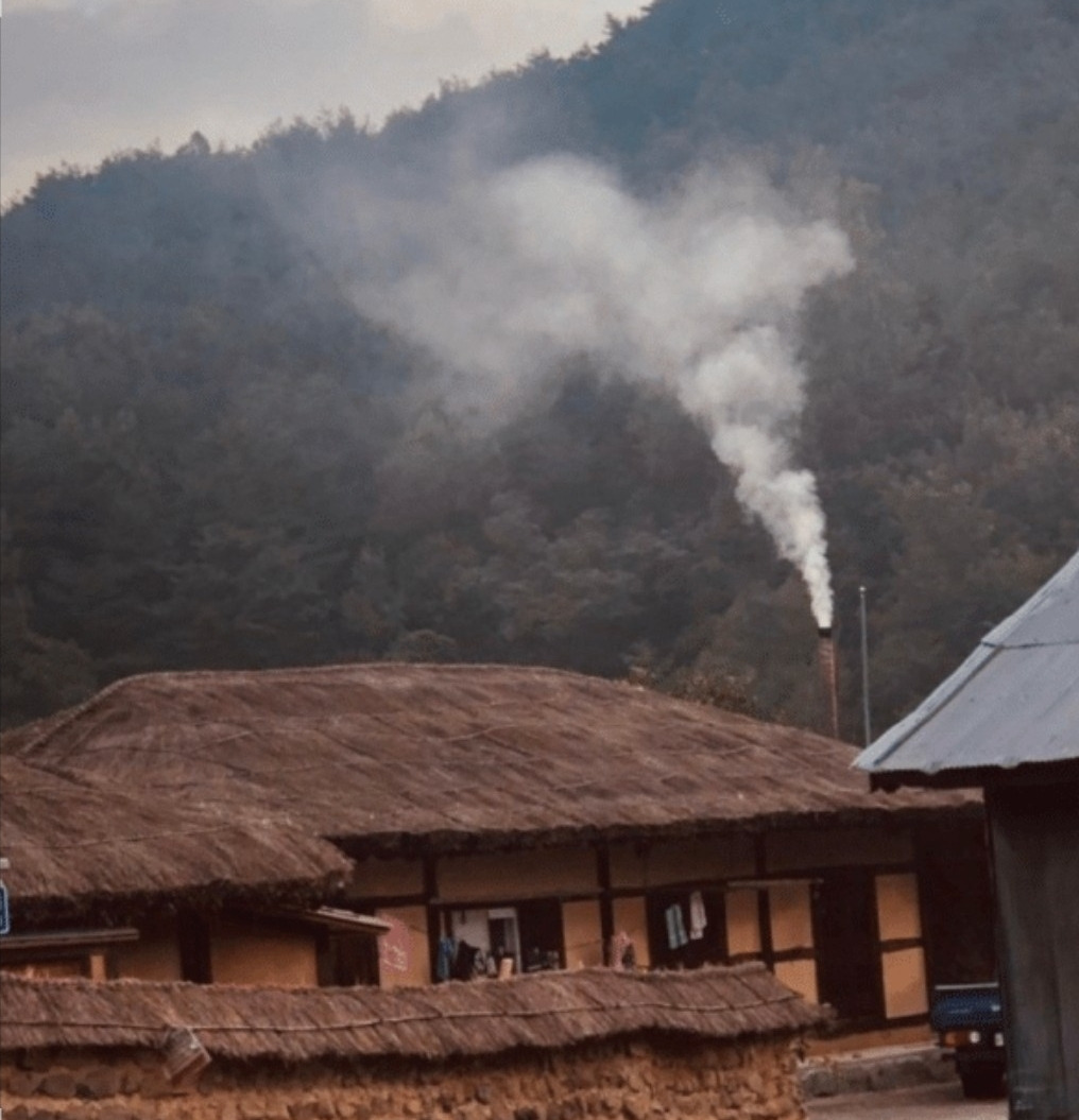 이 아침 시골 굴뚝에