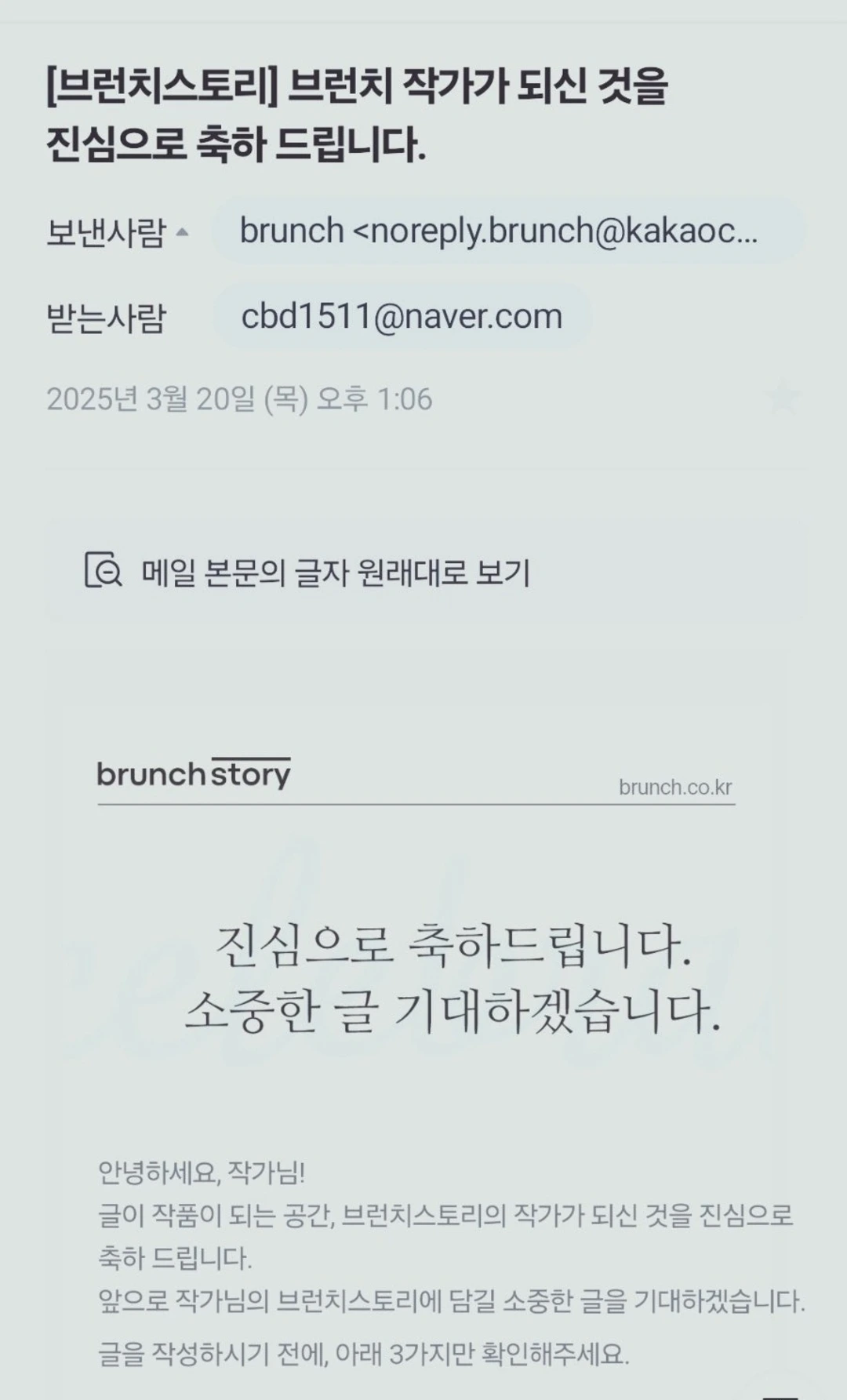 브런치 승인을 받았다는 메일을 처음 마주했던 날을 아직도 또렷하게 기억합니다.