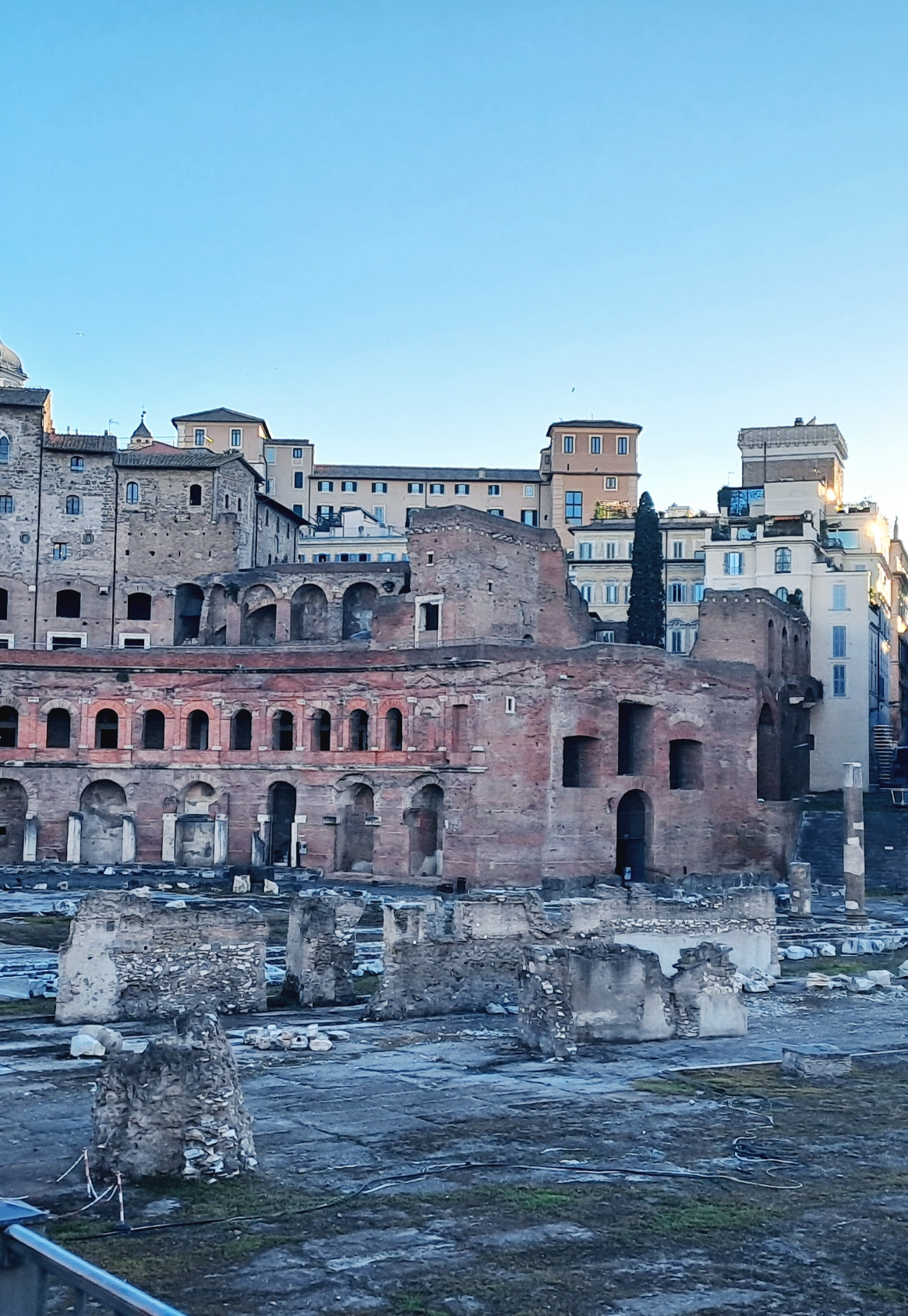 콜로세오를 지나 조금 더 걸어가니 오른편으로 붉은 벽돌 건물들과 아치형 구조물이 층층이 쌓인 모습이 눈에 들어왔다. 처음에는 그저 고대 유적의 흔적 정도로만 보였으나, 이내 이곳이 트라야누스 황제가 세운 거대한 공공 광장, 포로 디 트라야 노(Foro di Traiano)의 일부라는 사실을 떠올리게 되었다.