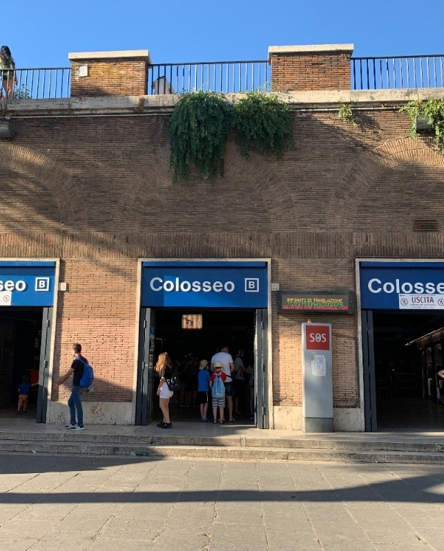 콜로세움 옆 도로를 따라 걸어가자 우측에는 지하철 콜로세오 역이 자리해 있었고, 현대의 기차 진동과 고대의 돌기둥이 한 화면 안에서 공존하는 독특한 대비가 로마만의 풍경을 만들어내고 있었다.