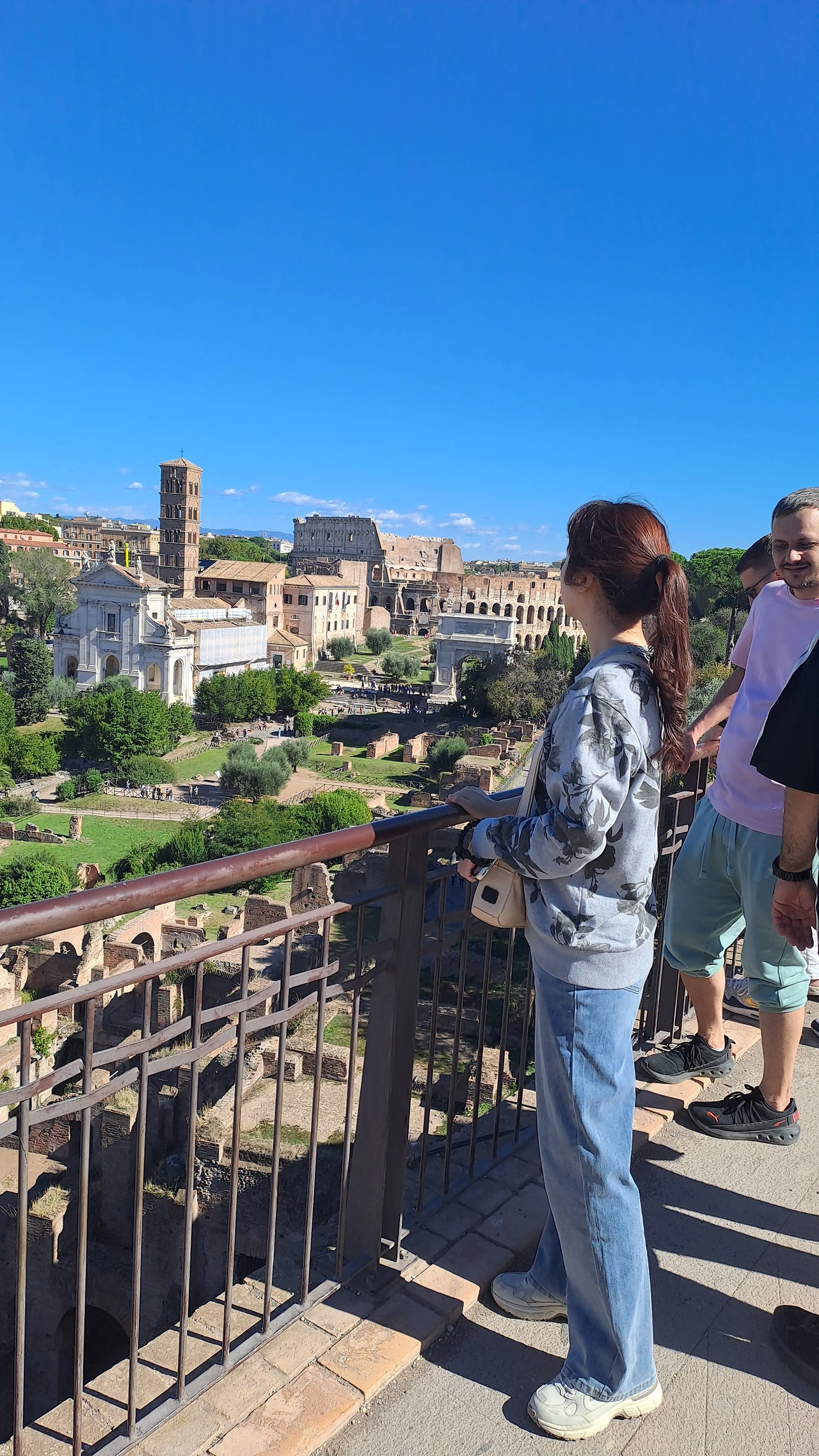 그 자리에서 잠시 바람을 맞으며 풍경을 바라보았다. 수천 년의 시간이 돌과 흙, 햇빛과 바람에 스며 조용한 울림을 만들고 있었다. 여행이라는 것은 결국 이렇게 단 하나의 장면으로 마음에 깊이 남는 것이라는 생각이 들었다. 로마의 오래된 시간과 오늘의 우리가 한데 포개지는 이 순간은 오래 기억될 것만 같았다. 그렇게 잠시 숨을 고른 뒤, 우리는 언덕 아래로 이어지는 길을 향해 천천히 몸을 돌렸다. 아직 내려가야 할 길이 남아 있었고, 그 길에는 또 다른 장면이 우리를 기다리고 있었다.