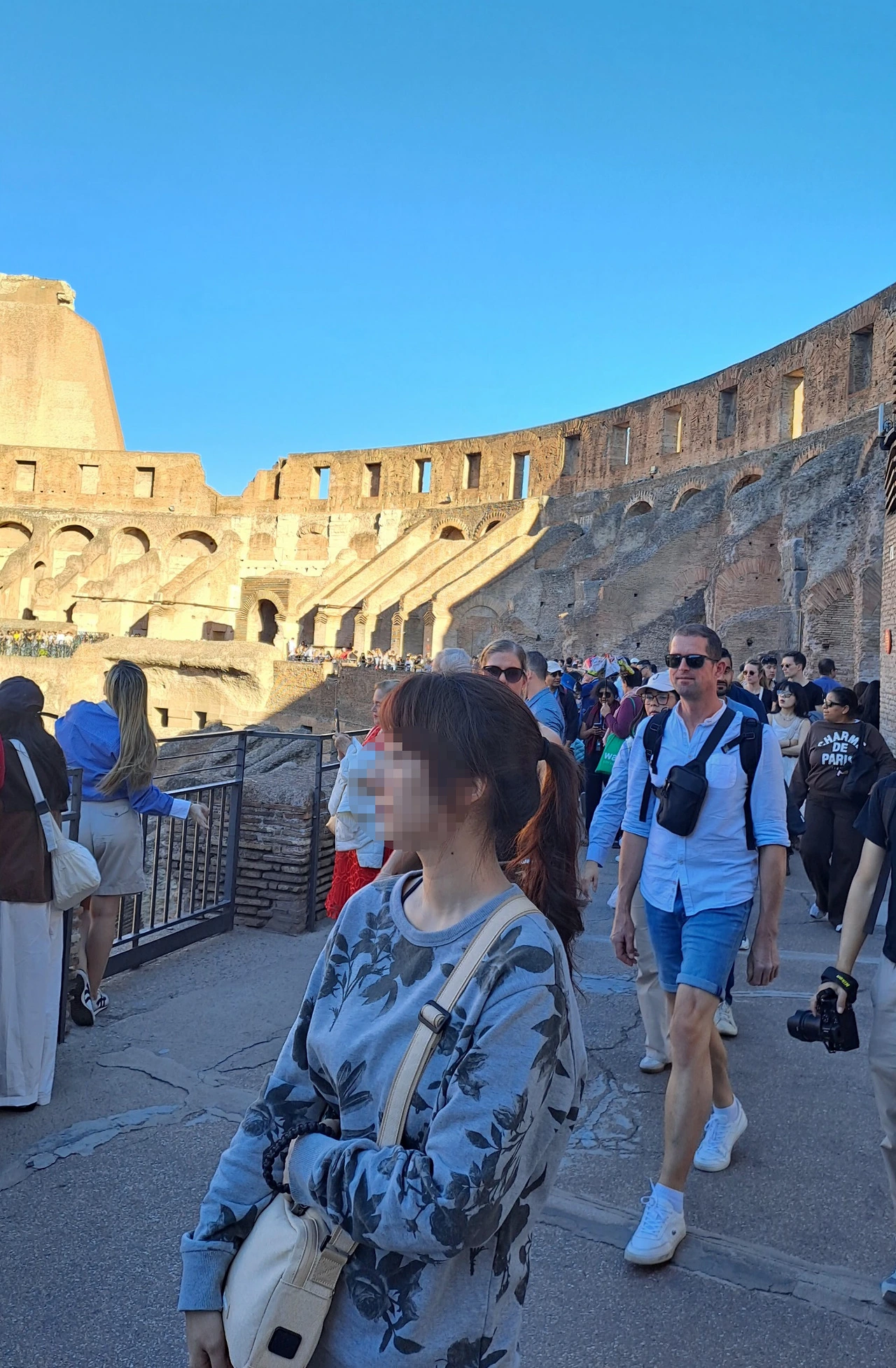 그 순간 콜로세움은 더 이상 오래된 건물의 잔해가 아니었다. 인간의 삶과 갈등, 그리고 전설이 뒤섞인 하나의 살아 있는 이야기처럼 다가왔다. 아들은 구조물의 압도적인 규모에 감탄하며 여러 각도에서 사진을 찍느라 바빴다. 거대한 아치와 빛의 방향을 맞추기 위해 이리저리 자리를 옮기는 모습에서, 이 순간을 온전히 기록하고 싶어 하는 마음이 그대로 전해졌다. 딸은 그와 달리 한 곳에 서서, 콜로세움 내부로 흘러드는 빛과 그림자가 만들어내는 대비를 오래 바라보고 있었다. 밝음과 어둠이 겹치는 자리마다 시간이 층층이 쌓여 있는 듯해, 그녀만의 방식으로 이 공간을 읽어내고 있는 것처럼 보였다.