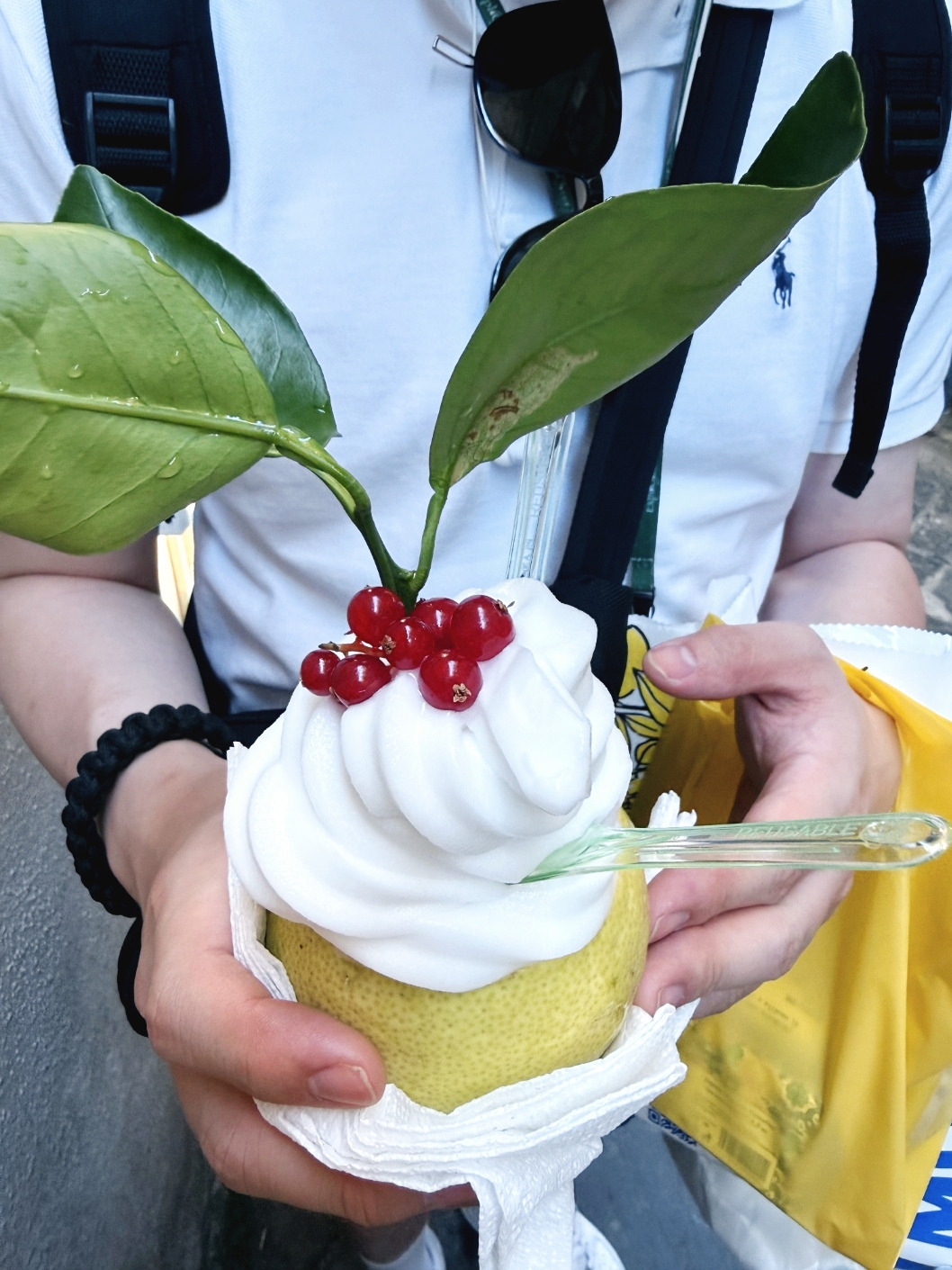 유리병 속 리몬첼로는 햇빛을 받아 황금빛으로 반짝였다. 작은 잔에 따라 건네받은 술을 천천히 입에 머금었다. 향이 먼저 코를 스쳤고, 이어 달콤함과 알싸함이 겹쳐졌다. 목을 타고 내려가는 온기는 부드러웠고, 입안에는 레몬 껍질의 쌉싸름함이 길게 남았다. 단순한 맛이 아니라, 이 도시의 햇살과 공기가 응축된 감각처럼 느껴졌다.