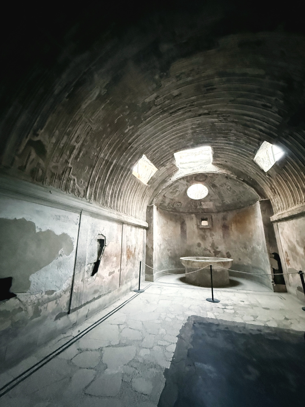 목욕탕 유적에 들어섰을 때, 물소리도 김도 이미 사라진 지 오래였지만 둥근 천장 아래에는 묘한 온기가 감돌고 있는 듯했다. 아치형으로 이어진 천장은 생각보다 높았고, 벽면에는 희미하게 남은 색의 흔적이 보였다. 한때 이 공간을 가득 채웠을 증기와 사람들의 말소리가 눈에 보이지 않는데도, 공기 어딘가에 남아 있는 듯했다.