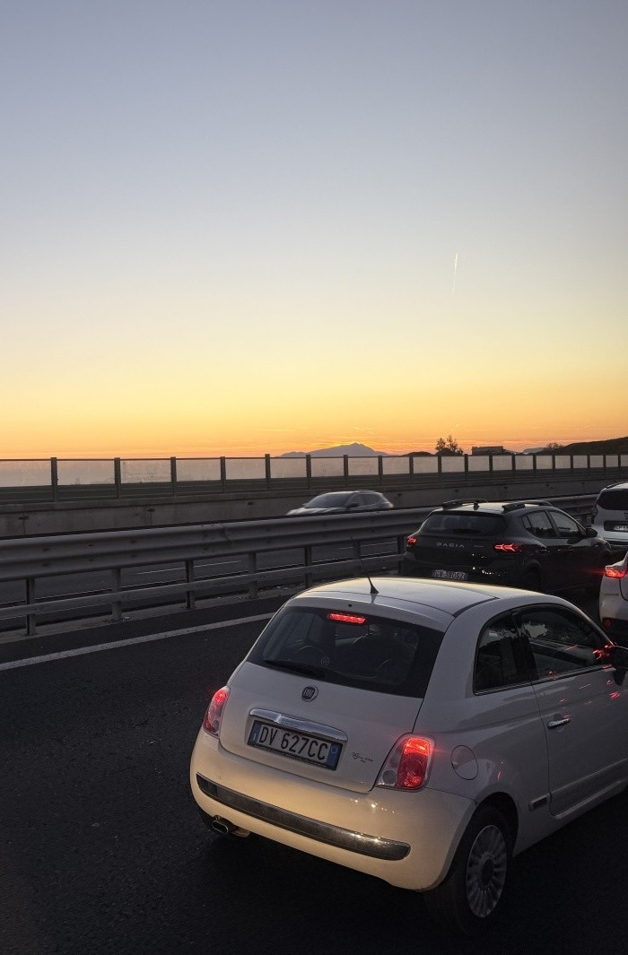 나폴리 첸트랄레역에서 출발한 열차는 어둠 속을 가르며 달렸다. 차창에 비친 불빛들이 길게 늘어나 흐르는 선이 되었고, 멀리 보이는 마을의 불빛은 별처럼 흩어져 있었다. 그리고 수평선 너머에는 아직 해가 완전히 사라지지 않은 채 손톱만 한 붉은빛을 남기고 있었다. 그 산빛이 창문을 통해 스쳐 지나가며 얼굴을 희미하게 비추었다. 하루가 끝났다고 말하기에는 아직 조금 남아 있는 빛이었다.