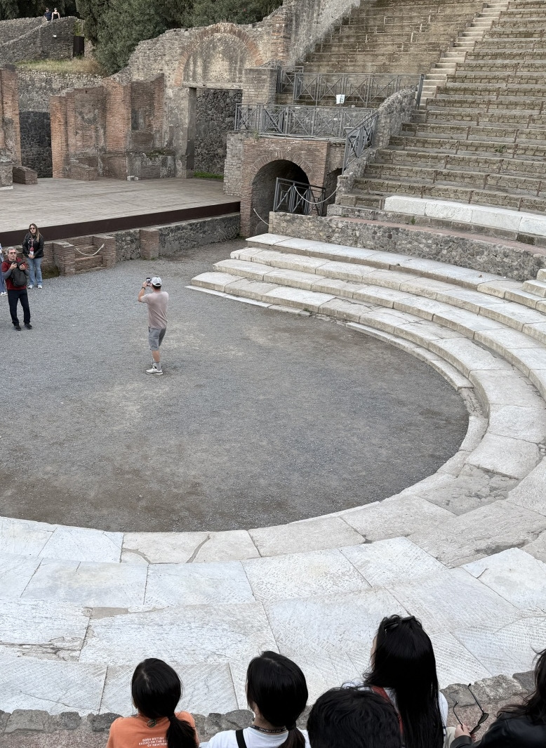 해가 완전히 기울 무렵, 우리는 야외 공연장을 마지막으로 발길을 돌렸다. 둥근 돌계단은 반원형으로 층층이 이어져 있었고, 그 위에는 하루의 그림자가 길게 내려앉아 있었다. 계단 하나하나에는 오랜 세월의 마모가 남아 있었고, 발이 닿는 부분은 매끈하게 닳아 있었다. 누군가의 기대와 환호, 박수와 탄식이 이 자리를 채웠을 시간들이 문득 겹쳐졌다.