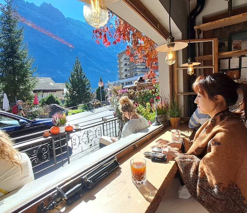 길가의 기념품 가게에 들러 이것저것 천천히 구경을 하며 시간을 보냈고, 마음에 드는 물건 몇 가지는 조심스럽게 골라 구입하기도 했다. 따사로운 햇살이 내려앉은 길 위에서 목을 축이기 위해, 로마에서 즐겨 먹던 젤라토를 다시 손에 들었다. 익숙한 맛이 낯선 공간 속에서 새롭게 스며들며, 여행의 기억들을 자연스럽게 이어 주고 있었다. 그렇게 우리는 그린델발트의 중심 시가지를 천천히 걸으며, 사진을 남기고, 커피를 마시고, 소소한 간식을 나누는 하루를 보냈다.