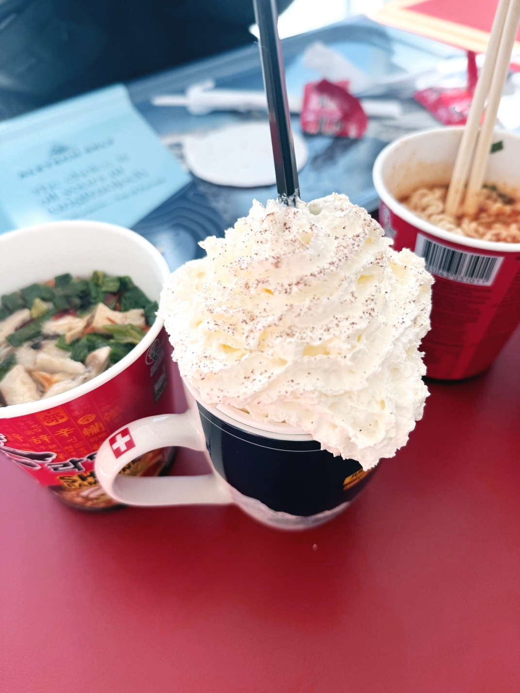 이곳에는 한국인 여행객들 사이에서 일종의 성지순례처럼 전해지는 특별한 풍경이 하나 있다. 바로 융프라우 산악열차 티켓을 소지한 한국인에게 제공되는 '신라면'이다. 타국 만리타향, 그것도 해발 3,454m의 설산 한복판에서 낯익은 붉은색 컵라면 용기를 마주하는 기분은 무척이나 묘했다. 현지 물가로 따지면 만 원이 훌쩍 넘는 귀한 몸이라지만, 우리에게는 가격보다 그 존재 자체가 주는 반가움이 더 컸다.
