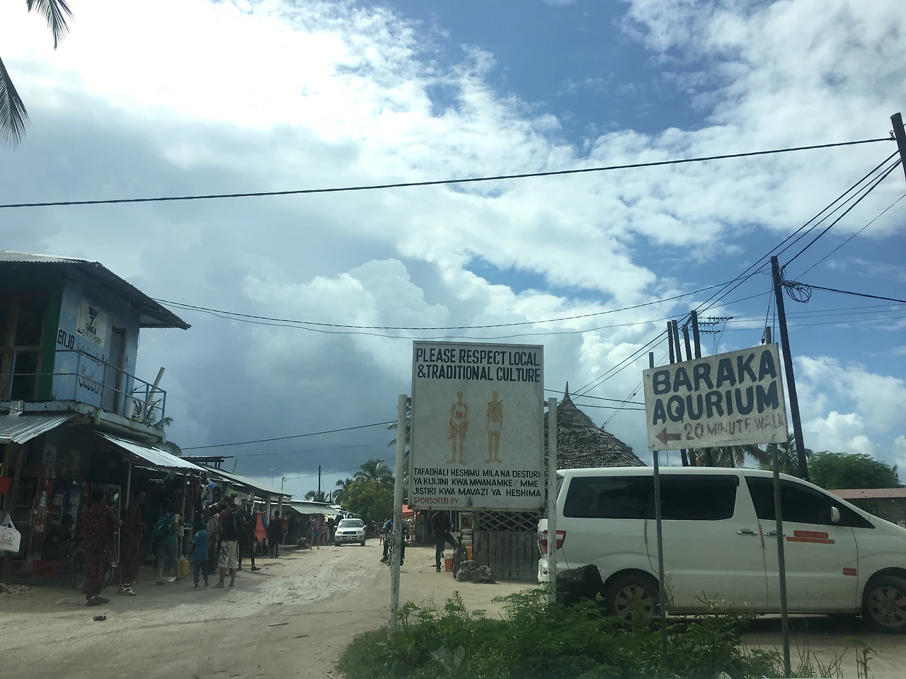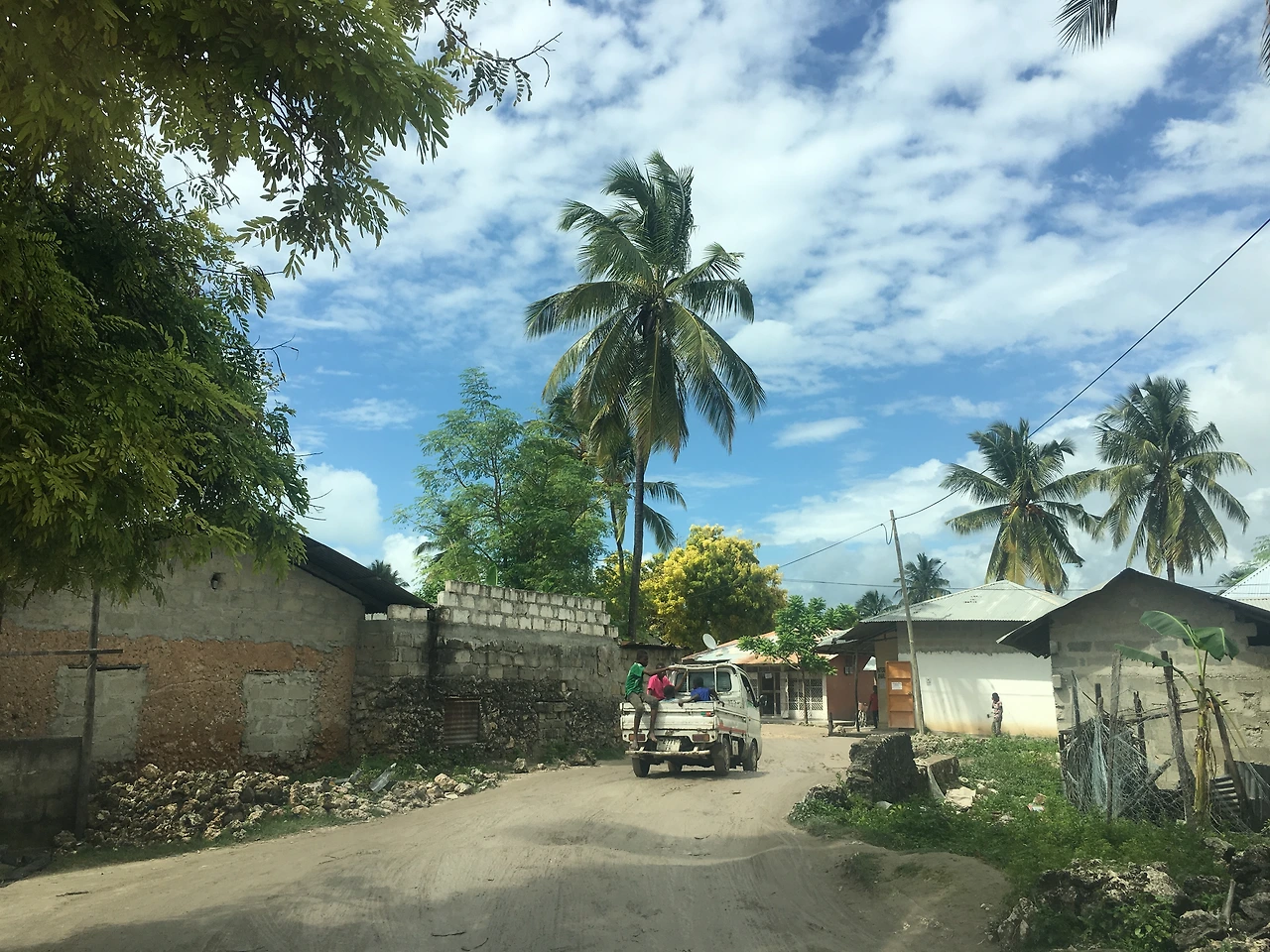 구글맵 내비가 능귀 해변에 가까워지자 또 다시 "여기가 맞나" 싶게 만드는 후미진 동네가 나타난다. 더락레스토랑에서도 그랬듯, 잔지바르에는 유명하고 예쁜 명소가 대체로 빈곤한 마을에 둘러싸여 있는것 같다.