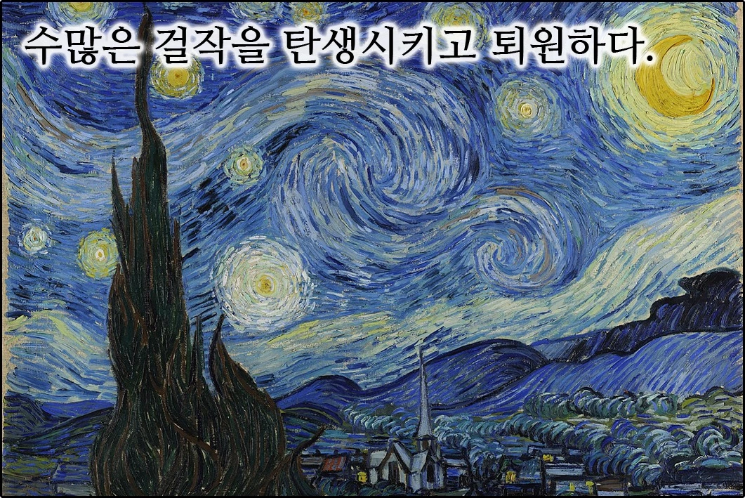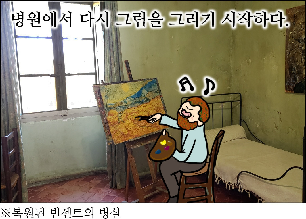 빈센트는 병원에 있는 동안 수많은 걸작들을 쏟아냈는데, 약 1년이 넘는 병원 생활 동안 그려낸 그림만 150여 점이 넘을 정도다. 그 유명한 <별이 빛나는 밤>도 병원에서 그린 그림이다.(정작 빈센트는 별이 빛나는 밤을 실패작이라고 여겼다고 한다.)