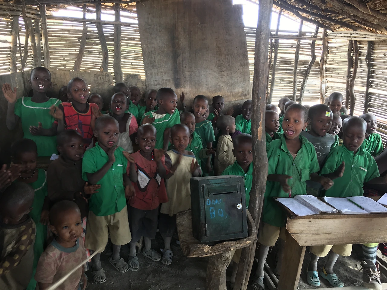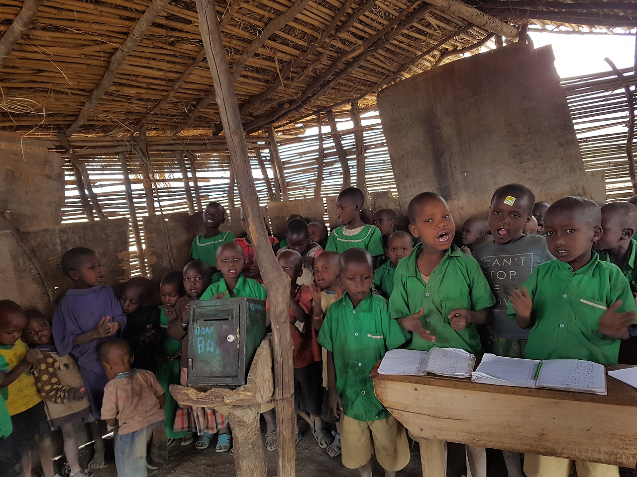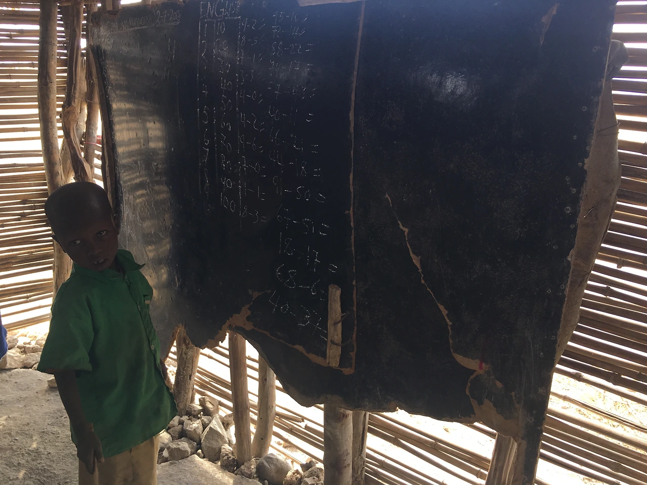 집 구경을 마치고... 매캐한 냄새를 털어내며 나오는데 족장 아들이 학교 구경을 시켜주겠다며 우리를 데려갔다. 학교라고 데려간 곳에는 책상 하나와 깨끗한 공책 세 개 정도가 '세팅'되어 있고 아이들은 그 뒤로 빼곡히 서있었다. 부자연스럽기 그지없었다. 우리가 들어서자 큰 소리로 환영의 노래를 불러주기 시작하는데 표정과 눈빛이 귀엽지 않고 그저 '퍼포먼스'라는 느낌이 들었다.