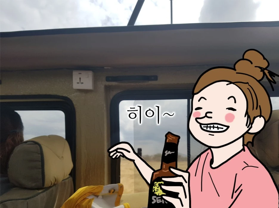 이제 공원을 나와 응고로 응고로 로 마저 가는 길은 가다가 동물이 보이면 좋은 거고 아니어도 어쩔 수 없는 구간이다. 기분 좋게 가자고 맥주를 하나씩 나눠주었다.