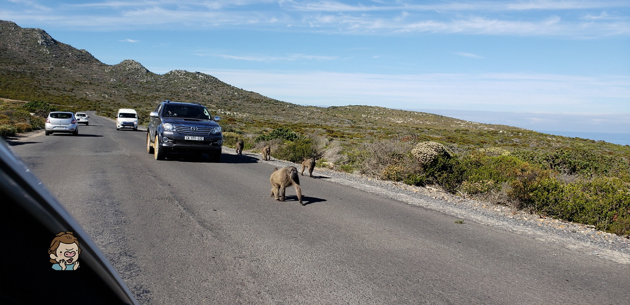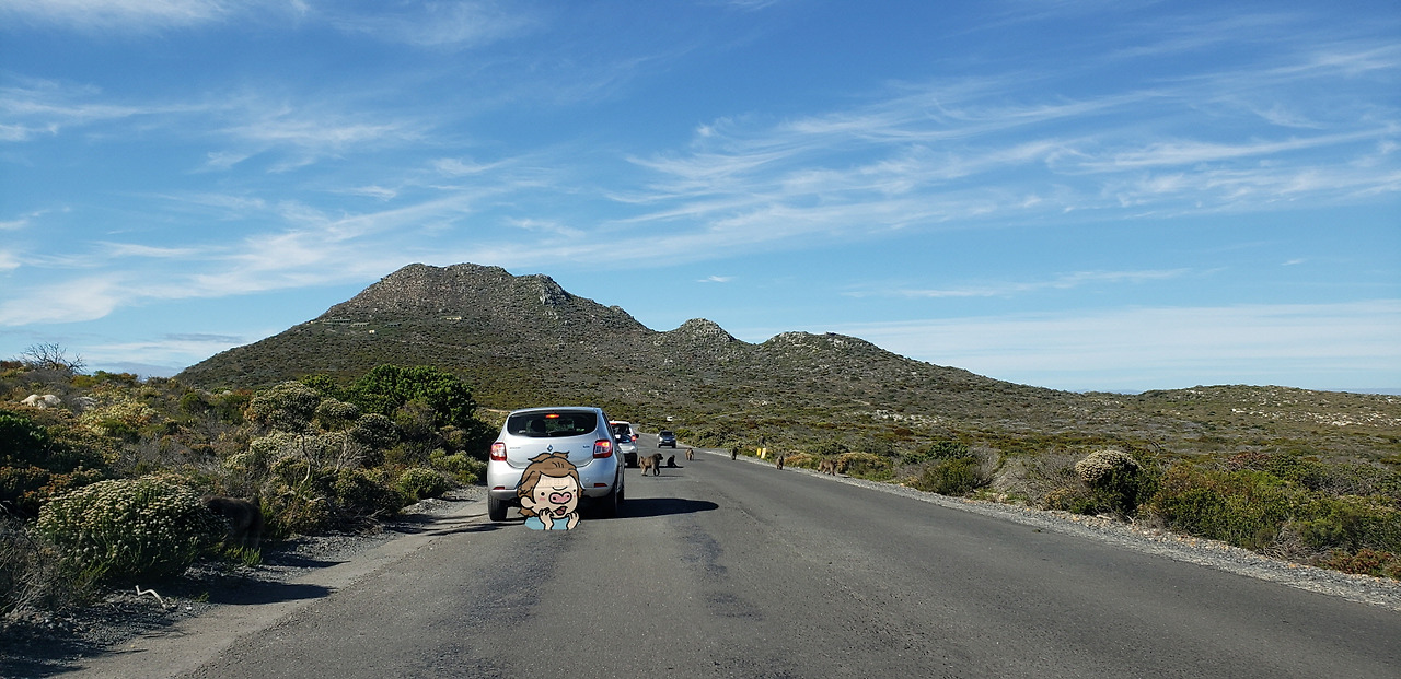 희망봉 여행길에는 자동차 도로에 자주 출몰하는 바분을 조심하며 운전해야 한다. 특히 등대가 유명한 케이프포인트로 들어가는 구간에서는 이제 거의 다 왔다는 생각에, 그리고 주차할 곳을 찾아야 한다는 생각에 방심하기 쉬운데 사실은 이곳에 더 많은 바분이 돌아다니므로 더욱더 조심조심해야 한다. 케이프포인트 입구에서 교통사고로 죽은 아기 바분을 바라보며 망연자실하던 엄마 바분을 봤던 일이 있다. 마음이 아팠다.