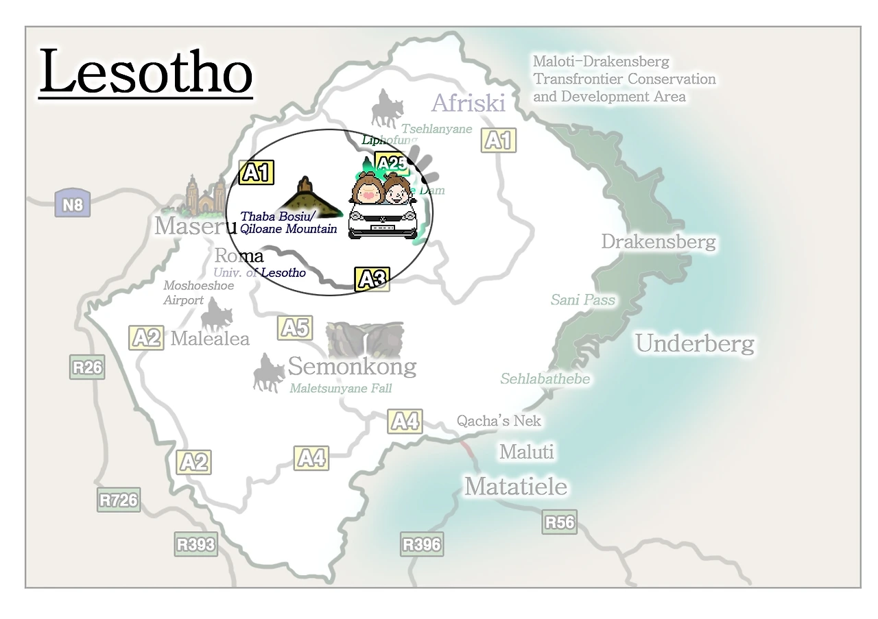 오늘의 목적지는 타바 보시우(Thaba Bosiu). 레소토의 세종대왕 같은 존재인 모슈슈 1세가 이곳에서 레소토를 세웠다. 그리고 수많은 외세의 위협 속에서도 꿋꿋하게 독립을 지켜낸 상징적인 장소다. 수도 마세루에서는 24km 떨어져 있다.