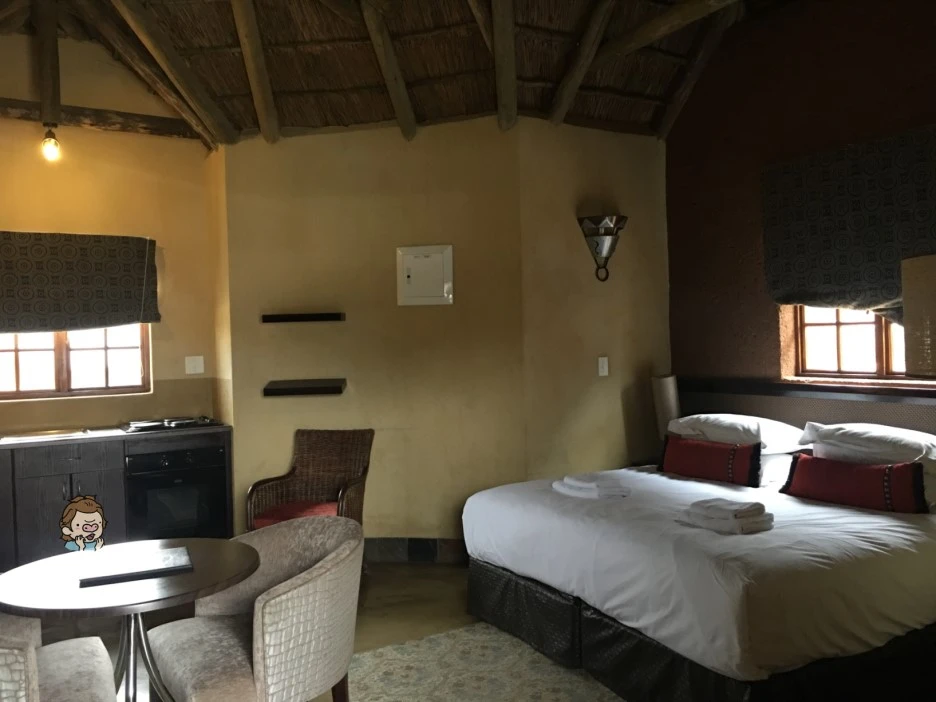 실내가 의외로 널찍하고 따뜻했다. 욕실과 화장실이 갖추어져 있다. 아프리카 초가집이라는 재미에 편안함, 편리함까지 갖춘 훌륭한 숙소였다.