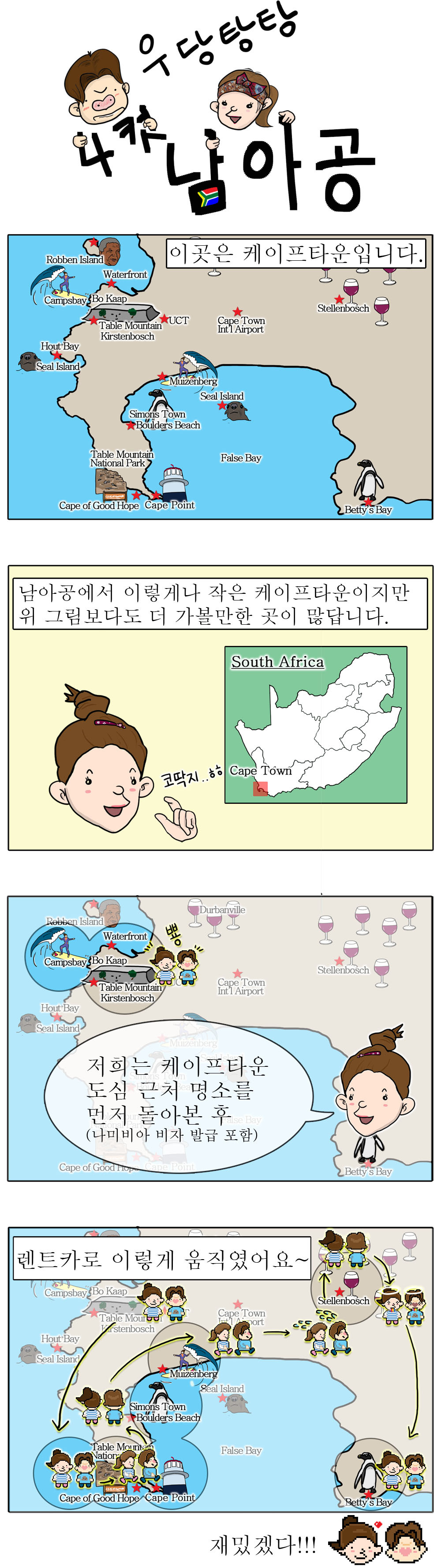 위의 지도를 그리다가 케이프타운이 그 명성에 비해 남아공 국토에서 차지하는 비중이 정말 작다는 것을 알았다. 저 정도로 코딱지만 했을 줄이야... 그렇지만 좁은 면적에 비해서 ‘꼭 가봐야지 싶은 곳’은 다른 지역에 비해서 압도적으로 많았다. 내가 사는 마타틸레랑 비교하다 보니 더 그렇게 느껴졌다.