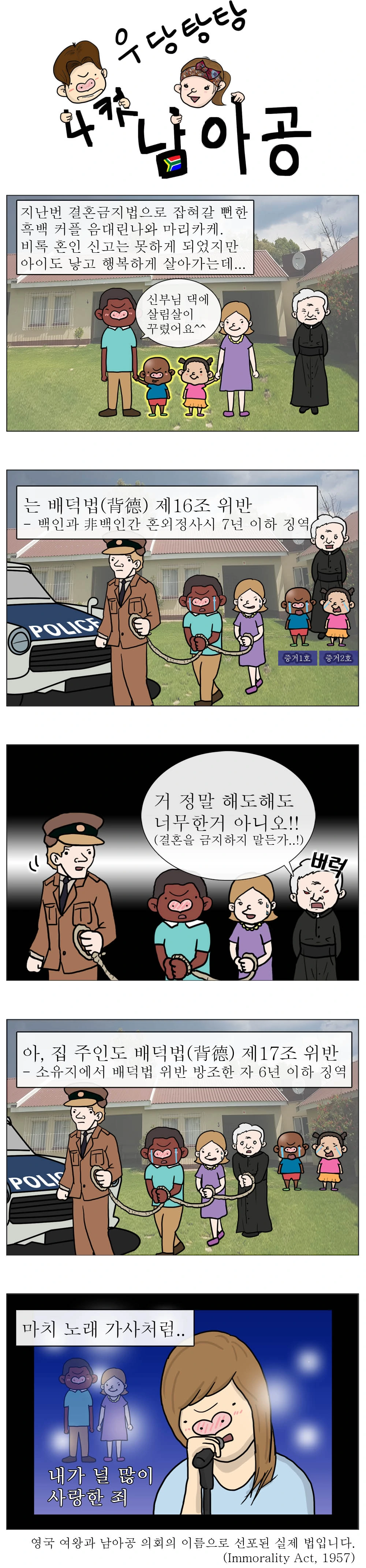 이번에 소개할 배덕법(Immorality Act)은 결혼금지법(Prohibition of Mixed Marrages Act)과 궤를 같이 하는 인종 분리 정책의 하나이다.