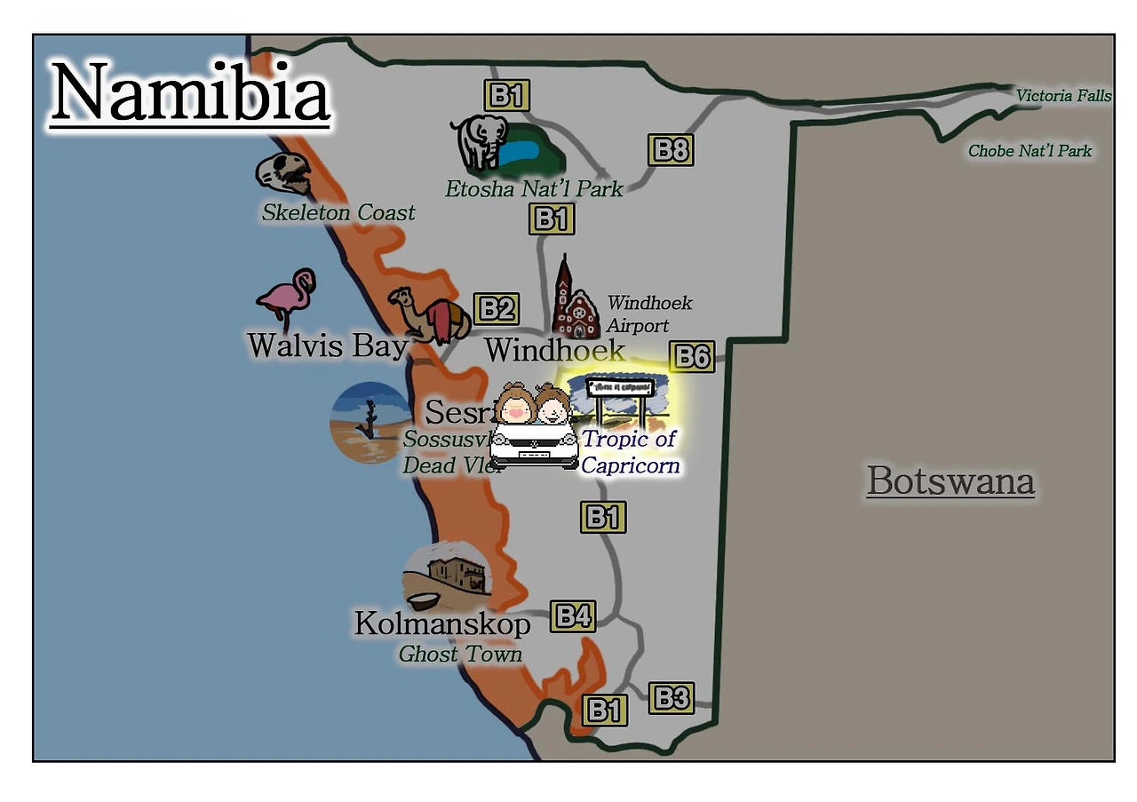 트립어드바이저에서 나미비아 관광 정보를 찾다가 Tropic of Capricorn 표식 정보를 발견했다. 거창한 관광지는 전혀 아니었다. 남회귀선임을 가리키는 간판 하나. 그러나 그 지구과학적(?)인 특별함 때문인지 많은 사람들이 인증 사진을 찍어 올리고 있었고, 나도 보자마자 끌렸다.