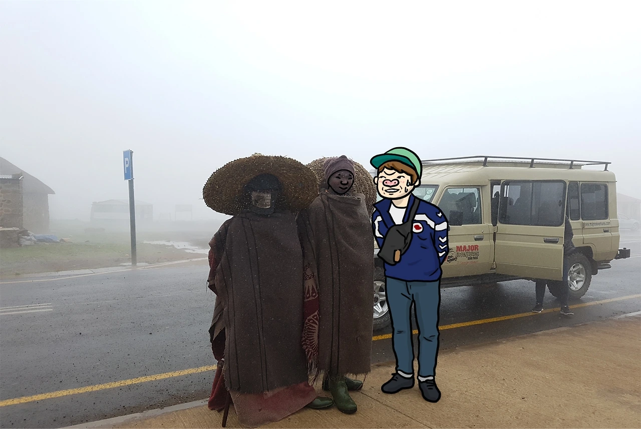 레소토 땅 대부분의 해발 고도가 1,800미터 이상이다. 남아공에서부터 자동차를 타고 육로 국경으로 다가가다보면 짙은 안개 구간을 통과하는 경우가 있는데, 아래쪽에서는 구름이라고 생각했던 곳까지 올라와버린 것이다.
