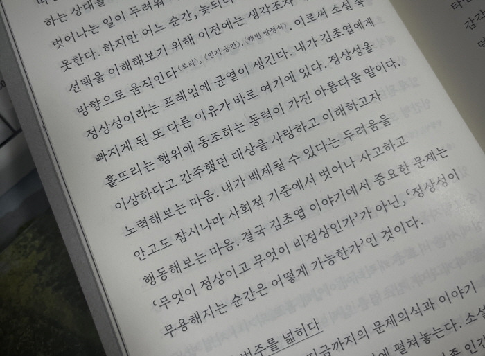 (...) 결국 김초엽 이야기에서 중요한 문제는 '무엇이 정상이고 무엇이 비정상인가'가 아닌, '정상성이 무용해지는 순간은 어떻게 가능한가'인 것이다.