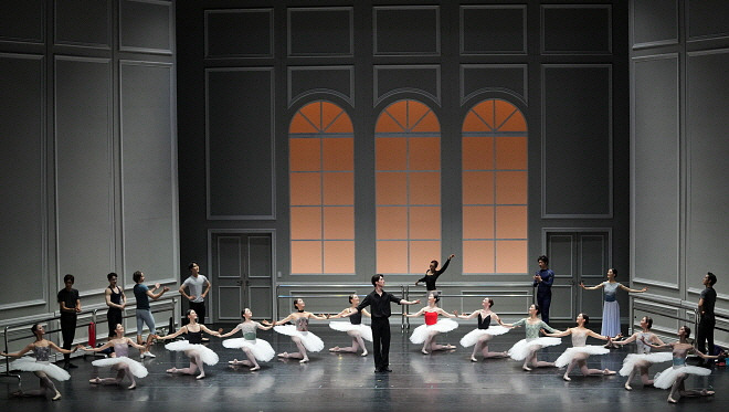 본 공연이 시작되기 전부터 무용수들은 연습실로 꾸며진 무대 위에서 몸을 푼다. 입장으로 소란스럽던 객석에서는 일순간 긴장감마저 맴돈다. 그리고 시작된 공연. 많은 대사는 이뤄지지 않는다. 연습실을 배경으로 한 구간에서는 발레마스터(발레단의 훈련 교사 겸 안무가)의 안무 코칭 대사 정도가 전부다.