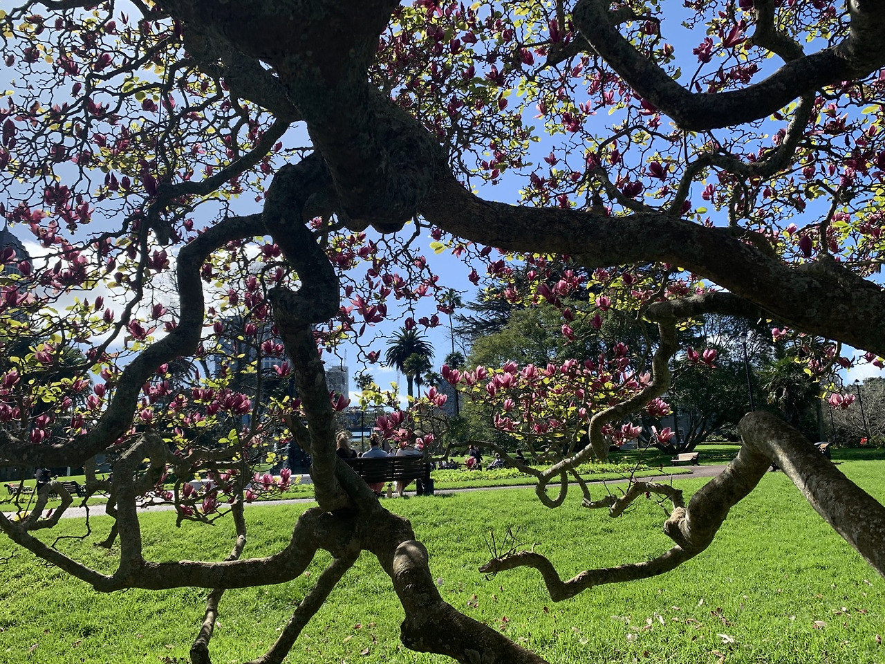 오클랜드 아트 갤러리에서는 상설 전시와 특별 전시가 진행되는데 20 NZD (약 16,400 원)에 해당되는 입장료를 굳이 내고 싶지 않다면 상설 전시 관람만으로도 볼거리는 괜찮다. 특히 3층 카페테라스에서의 점심이나 간단한 티타임은 공원 뷰를 즐길 수 있어서 추천. 아트 갤러리 바로 옆에는 앨버트 공원이 있고 여기에 자줏빛 마그놀리아(목련) 나무가 꽤나 인상적으로 꽃을 만개하고 있었다. 우리나라 목련은 주로 위로 솟은 수직형인데 반해 뉴질랜드의 목련은 옆으로 넓고 둥그렇게 퍼지는 형태의 모습을 띄고 있다. 코를 깊숙이 들이밀어야 은은한 꽃향기를 느낄 수 있다. 분수대 근처 벤치마다 오클랜드 대학교 학생들로 보이는 젊은이들이 삼삼오오 점심을 먹거나 책을 읽으며 휴식을 취하고 있었다. 잔디밭과 고목들로 잘 관리되어 있는 앨버트 공원을 산책하노라니 도시에 있다는 사실을 잠시 잊게 된다. 공원 건너편에는 오클랜드 대학교 캠퍼스가 자리하고 있어 캠퍼스까지 걸으면 토스 만보기에서 만 걸음은 충분히 채울 수 있다.