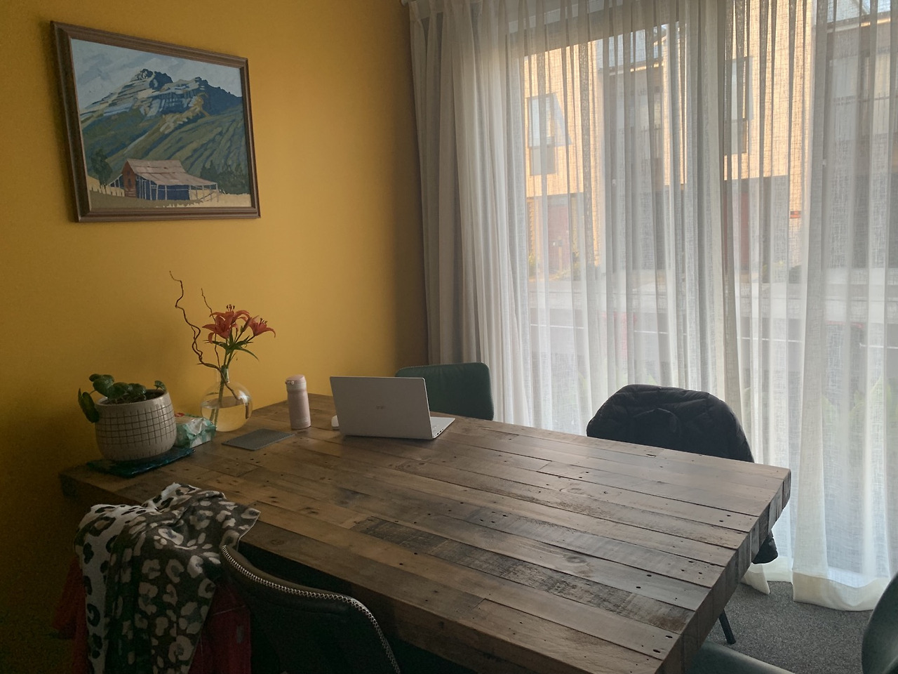 우선 부부가 요일을 정해 번갈아 가며 2층 서재에서 재택근무를 하는 상황이라 와이파이 부스터를 설치해서 인터넷 연결 상태가 꽤 안정적이었다. 1층에 있는 커다란 원목 식탁이 내 차지였는데 뉴질랜드산 플랫화이트 한 잔을 마시며 커튼 사이로 들어오는 햇빛을 등지고 널찍한 책상에 노트북을 켜고 앉아 잔잔한 재즈음악을 들으면서 일하자니 웬만한 카페 못지않은 분위기에 미소가 절로 나왔다. 그렇지. 워케이션이 이런 거지. 가끔씩 톰이 내 발끝에 다가와 장난치거나 옆 의자에 앉아 놀아주기를 바라는 강력한 눈빛을 보낼 때를 제외하고는 오롯이 리포트 작업에 몰입할 수 있었다. 재택 하는 친구의 점심시간을 이용해 동네의 호수 + 요트 뷰를 누릴 수 있는 레스토랑에서 점심을 먹은 뒤 근처 공원을 산책하며 동네 구경을 하고 집에 돌아왔다.