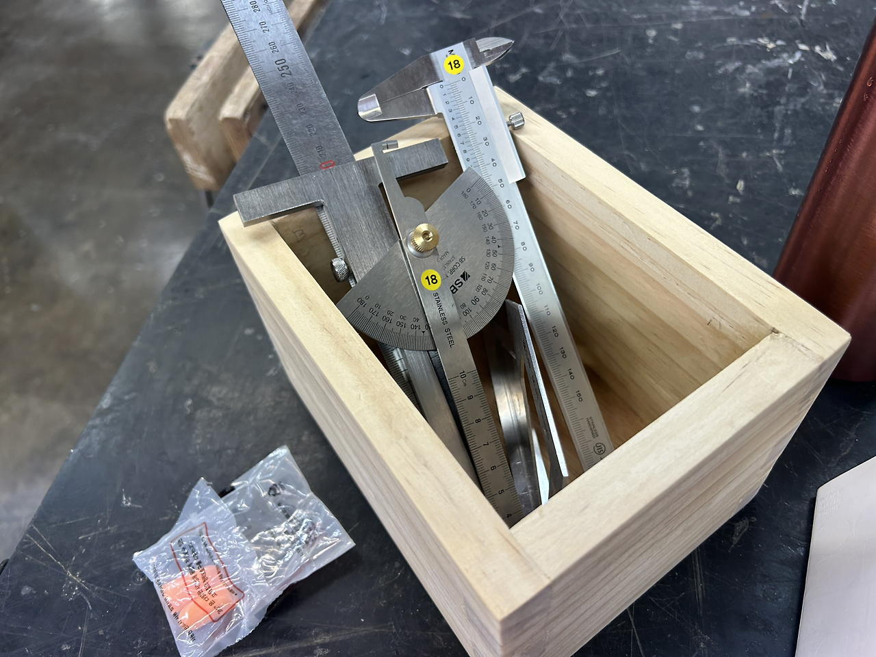첫 번째 실기 실습으로 가구제작 산업기능사 과정형 외부 평가에 대비해 우드박스를 만들게 됐습니다. 우드박스를 만드는 것보다는 평가에서 요구하는 "사개맞춤"짜임을 어떻게 하느냐를 배우기 위한 목적이 컸는데요. 국가시험에서는 가장 저렴한(!) 미국 소나무 집성판을 사용한다고 합니다. 잠시 나무의 촉감과 물결무늬를 느껴보았는데 망치로 힘을 주어 두드리면 자국이 남을 정도로 소프트했습니다. 원하는 사이즈의 나무 박스를 자유롭게 만들라는 과제를 받았는데요. 단, 사개맞춤(정의: 모서리에서 여러 갈래의 장부를 만들어 깍지 끼듯이 엇갈리게 한 맞춤, 네이버 국어사전. 영어로는 Box joint 또는 Finger joint라고 표현, 네이버 영어사전)으로 연결해야 하고 톱, 끌과 같은 수공구만 사용하라는 조건으로. 그래서 서둘러 제도 샤프와 자를 들고 내 마음대로 목재에 치수를 표기하기 시작했습니다. 각도기와 케가끼 등 여러 측정도구에 대한 사용법에 대해 설명을 듣긴 했지만 처음이라 어색해서 마킹하는 제 모습을 누가 봤다면 참 어설프네라고 생각할 수밖에 없었지요. 그래서인지 결과적으로 1~2 mm 오차도 있고 직각 사각형이 아니었습니다. 정규교육 제대로 받고 직장생활도 나름 오래 한 성인이 이런 것도 따라 하지 못할까 싶을 텐데요. 하지만 돌아보면 (굳이 변명하자면) 제 손으로 무언가 이렇게 치수를 넣고 이에 맞춰 톱질과 끌질을 하며 뚝딱뚝딱 작업을 해본 적이 없었습니다. 초등학교 때 만들었던 태극기함도 나무재료가 치수에 맞춰 이미 재단된 상태로 제공됐거든요. 슬프지만 '이런 것도 난 못할 수 있구나'를 알아차릴 수 있는 제 자신을 발견한 기회이기도 했습니다.