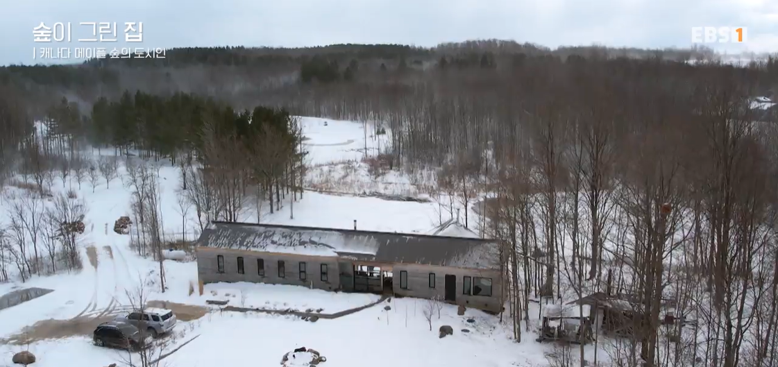 단풍국으로 유명한 캐나다는 전체 면적의 40%가 숲이라고 하는데요. 온타리오주의 미포드 숲은 1년에 절반이 겨울이라고 합니다. 오늘은 토론토에서 차로 2시간 30분 걸리는 미포드 숲 속에 살고 있는 주인공 가족을 만나볼 텐데요. 조경디자이너인 남편과 가구디자이너였던 아내, 17살, 14살 두 아들이 함께 살고 있습니다. 숲 속에 집을 지은 지는 8년이 넘었지만 남편은 생활비를 벌기 위해 평일에는 토론토 사무실에서 일하고 주말에는 숲에서 가족들과 지내고 있습니다. 경제적인 이유로 도시와 시골 생활을 병행하고 있는 셈이죠. 곧 대학생이 될 큰 아들에게 아무것도 물려줄 게 없으니 알아서 살라고 아버지가 농담을 하자 “Seriously?” 하면서 눈을 동그랗게 뜨는 장면을 보면서 한국 가족이나 캐나다 가족이나 현실형 대화 내용은 큰 차이 없다는 생각이 들었습니다. 보통 “숲이 그린 집” 사례를 보면서 뉴질랜드 리버튼 노부부를 제외하고 다들 자급자족을 하긴 하는데 어떻게 벌어먹고 살지? 하는 의문이 계속 들었는데요. 이 가족은 뜬구름 잡는 고립된 세상의 이야기가 아닌 보다 현실적인 전원생활을 하는 도시 가족의 생활상을 보여줘 개인적으로 공감이 더 가더라고요.