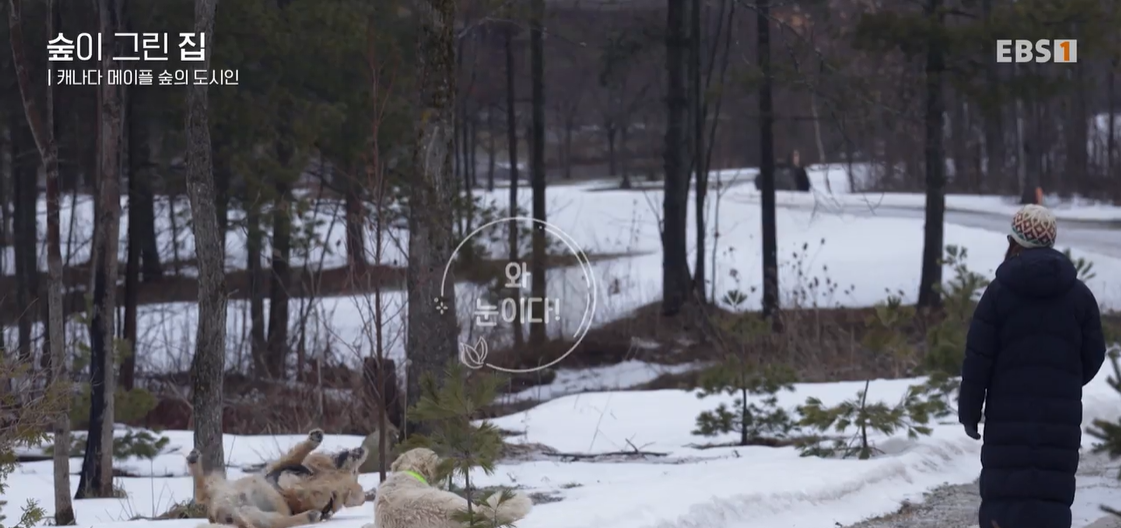 아침이면 새 지저귀는 소리에 잠을 깨고 창 밖 너머로 나무와 온갖 야생동물을 관찰할 수 있습니다. 부부는 새들을 위해 넉넉하게 먹이를 제공하고 있고 눈이 오면 개 두 마리와 산책을 합니다. 개들이 신나게 눈 위에서 뒹구는 모습을 보면서 반려동물 역시 자연 속에서 삶의 질이 높아졌겠다는 생각이 들더라고요.