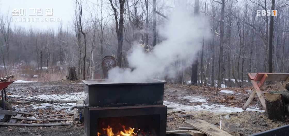 집 앞의 죽은 느릅나무로 난로를 때고 단풍나무에서 수액을 모아 여덟 시간 동안 팔팔 끓여서 1년 치 메이플 시럽을 만드는데요. 이들은 캐나다인 답게 설탕이나 꿀 대신 달콤한 메이플 시럽을 사용하고 있습니다. 도시 사람들이 숲으로 들어와 자연의 이치를 터득하며 자급자족하려고 노력하는 모습이 인상적이었습니다.