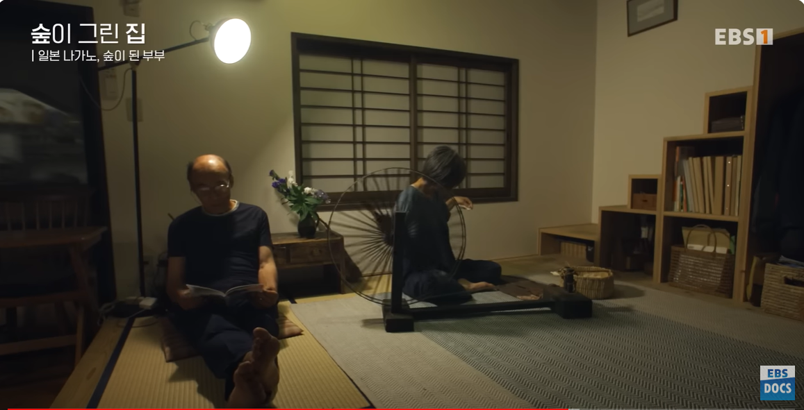 숲이 준 재료로 직접 지은 부부의 집 내부에는 정말 필요한 가구와 물건만이 정갈하고 소박하게 잘 정리되어 있었습니다. 채우는 것이 아닌 덜어내고자 하는 일본인 특유의 미니멀리즘이 느껴졌습니다. 아내는 얼마 전 밤마다 실을 잣는 취미 생활을 시작했는데요. 당연히 시간도 품도 많이 드는 고된 작업이지만 여유롭게 즐기는 모습이었습니다. 숲 속에서 살다 보니 시간도 많을 뿐 아니라 서둘러 실을 뽑아 옷 지을 이유도 없으니 가능한 일입니다.
