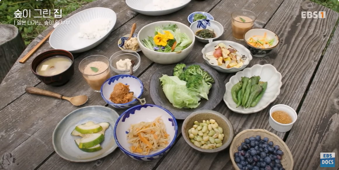 물질이 아니라 마음의 풍요가 중요하다고 말하는 부부의 일상을 보며 부럽다는 생각이 드는데요. 가축을 키우지 않아 자연스럽게 채식을 하고 삼시 세끼 메뉴는 숲이 정해주는 데로 제철에 맞게 재료의 신선함을 최대한 살려 간단히 조리합니다. 간장, 된장, 케첩, 마요네즈 등 직접 만든 다는 아내는 자연이 주는 신선한 식재료로 새로운 레시피를 개발하는데 집중합니다. 그 덕분인지 부부는 지금까지 병원 갈 일 없이 건강하게 살고 있습니다. 나중에 에코 빌리지에 살면 달걀을 얻기 위해 닭들을 길러야 하나 고민했었는데요. 이 부부를 보면서 꼭 그럴 필요는 없겠다 싶습니다.