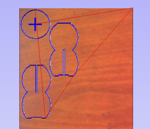 레이저로 미니어처를 만들어 결구 방향과 디자인을 러프하게 잡아본 다음, 캐드에서 디자인과 사이즈를 확정했습니다. 그런 뒤 Aspire로 커팅과 포켓의 경로를 설정했습니다. 이제 기계 작업을 하면 되나 싶었는데 아뿔싸. 나무 물결무늬 방향을 고려하지 않았다는 사실을 깨달았습니다. 급하게 가로였던 바디를 세로로 변경하고 커팅 여유분을 20 mm로 주었더니 제가 받은 사이즈를 넘어가게 되더라고요. 그래서 1200 mm X 2400 mm 전체 합판에서 첫 번째로 오른쪽 맨 끝에다 CNC 작업하는 동료의 남은 여백을 쓰기로 했습니다. 이와 더불어 추가로 고민했던 부분은 바로 티테이블을 세웠을 때 안정감 있게 설 수 있느냐였는데요. 높이가 560 mm 정도 되었거든요. 선생님의 조언에 따라 상판 사이즈를 줄이고 십자가 바닥 부분에 따주기로 했습니다. 그리고 크로스 형태로 조립하는 바디 부분에는 도그본을 줘서 딱 맞물리게끔 커팅을 하기로 했습니다. 이때 커팅되는 부분은 커팅이 되어도 움직이지 않고 합판에 잘 붙어 있도록 양 옆 두 개씩 탭을 설정해 두었습니다.