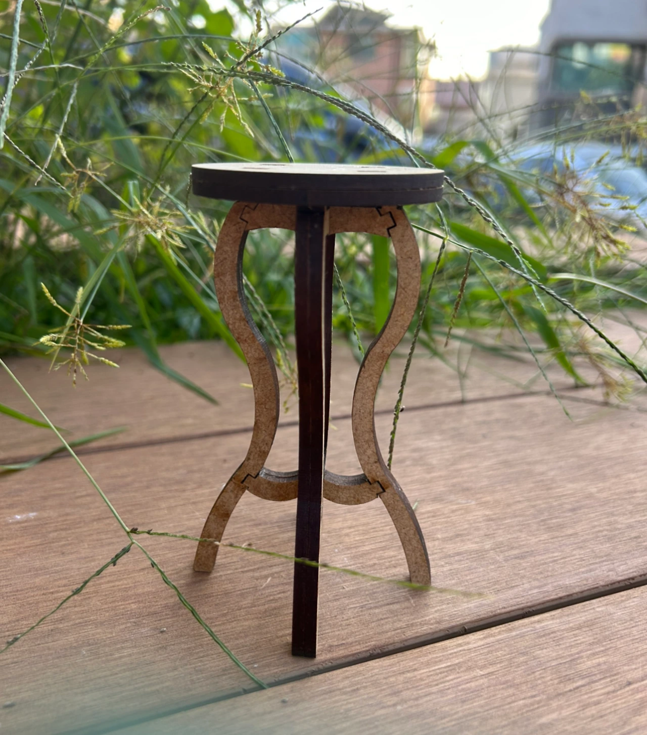 작품명은"웨이브 스툴"입니다. 뉴질랜드의 아라타키 해변의 파도를 떠올리며 다리와 보강대, 그리고 엉덩이 상판에 파도 물결무늬를 구현해보려고 합니다. 캐드와 Aspire 프로그램을 이용해 도면을 설계하고 경로 세팅을 했습니다. 우선 레이저로 미니어처를 만들어봤는데요. 입체적으로 봐야 스툴의 느낌이 올 것 같아서요. 다리 라인과 보강대 물결 라인이 제대로 사는지 확인했습니다. 미니어처로 보니 아래 보강대는 괜찮은데 윗보강대는 곡선을 좀 더 줘야 눈에 보이겠더라고요. 하지만 여전히 다리 곡선들이 무게중심을 제대로 잡아줄 수 있는 궁금했습니다.