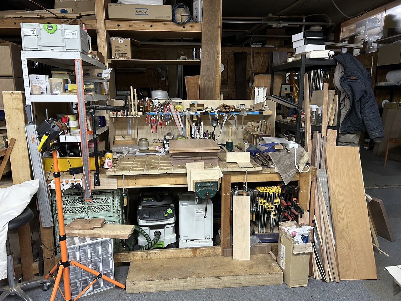 제가 다니는 공방 아카데미에서 '가구제작 산업기사 자격증 실기시험' 진행으로 인해 현장 견학 차 마이스터와 동료들과 함께 짜맞춤가구의 대가 백만기 선생님이 운영하는 <나들목 가구 만들기 짜맞춤 전수관>을 방문하게 됐습니다. <짜맞춤, 그 견고함의 시작>의 공동 저자이기도 한 백만기 선생님은 못을 사용하지 않고 전통 짜맞춤 결구를 활용한 가구 제작의 기술과 수공구 사용법 등을 널리 전파하려고 노력하는 분이신데요. 그분이 운영하는 공방은 인천 부평구의 어느 아파트 상가 지하의 목욕탕을 개조한 곳으로 꼬불꼬불 미로 같았지만 공간이 군데군데 널찍하기도 해서 숨바꼭질하듯 둘러보는 재미가 있었습니다.