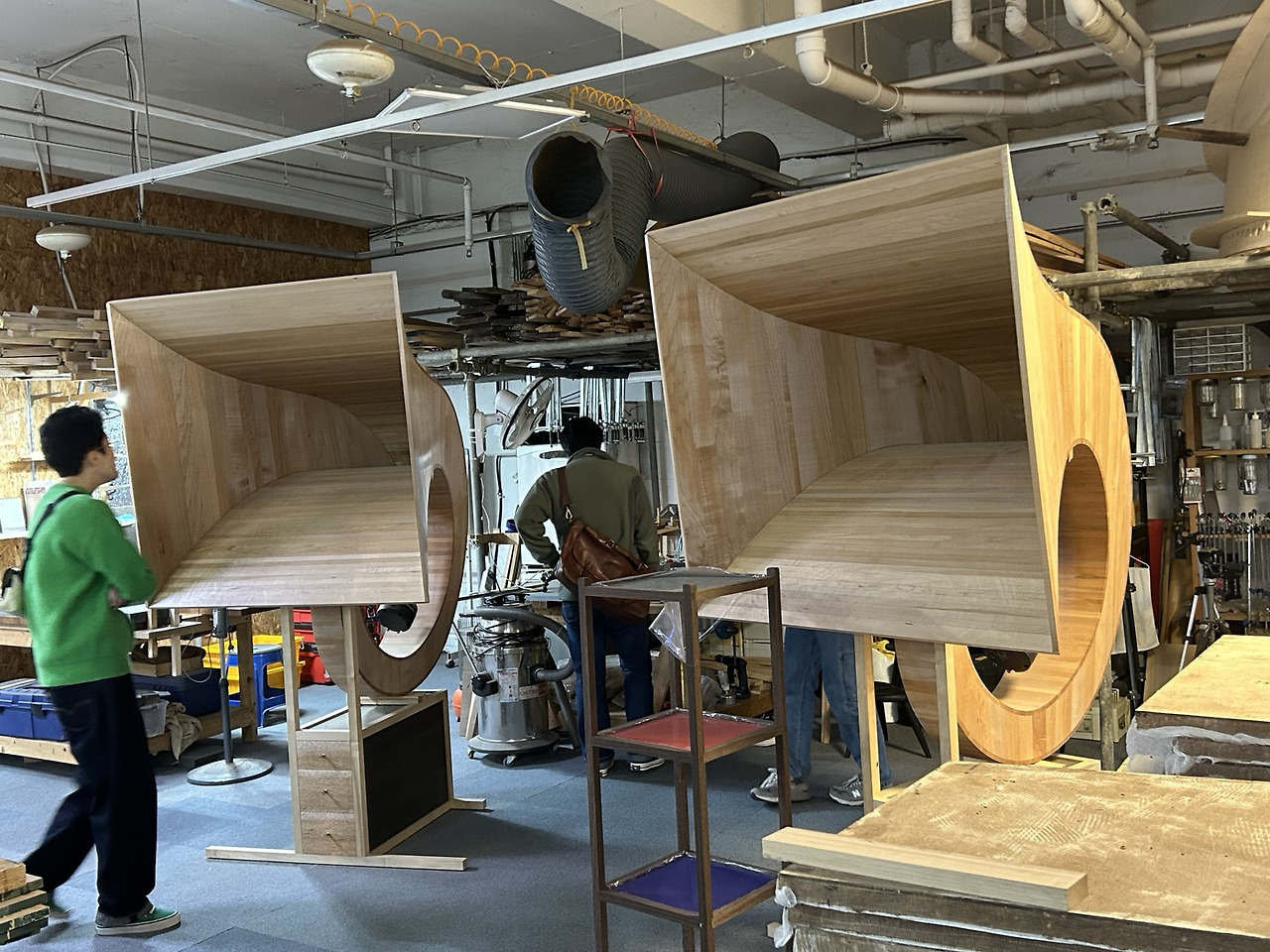 백만기 선생님께서는 스피커 제작에도 진심이라는 말씀을 들었는데 마침 어느 그룹 회장님에게 주문을 받은 대형 스피커를 제작하고 계시더라고요. 2층 사무실에는 손으로 제작한 다양한 목제 의자들이 구비되어 그 편안함을 비교해 볼 수 있는 것도 흥미로웠습니다.