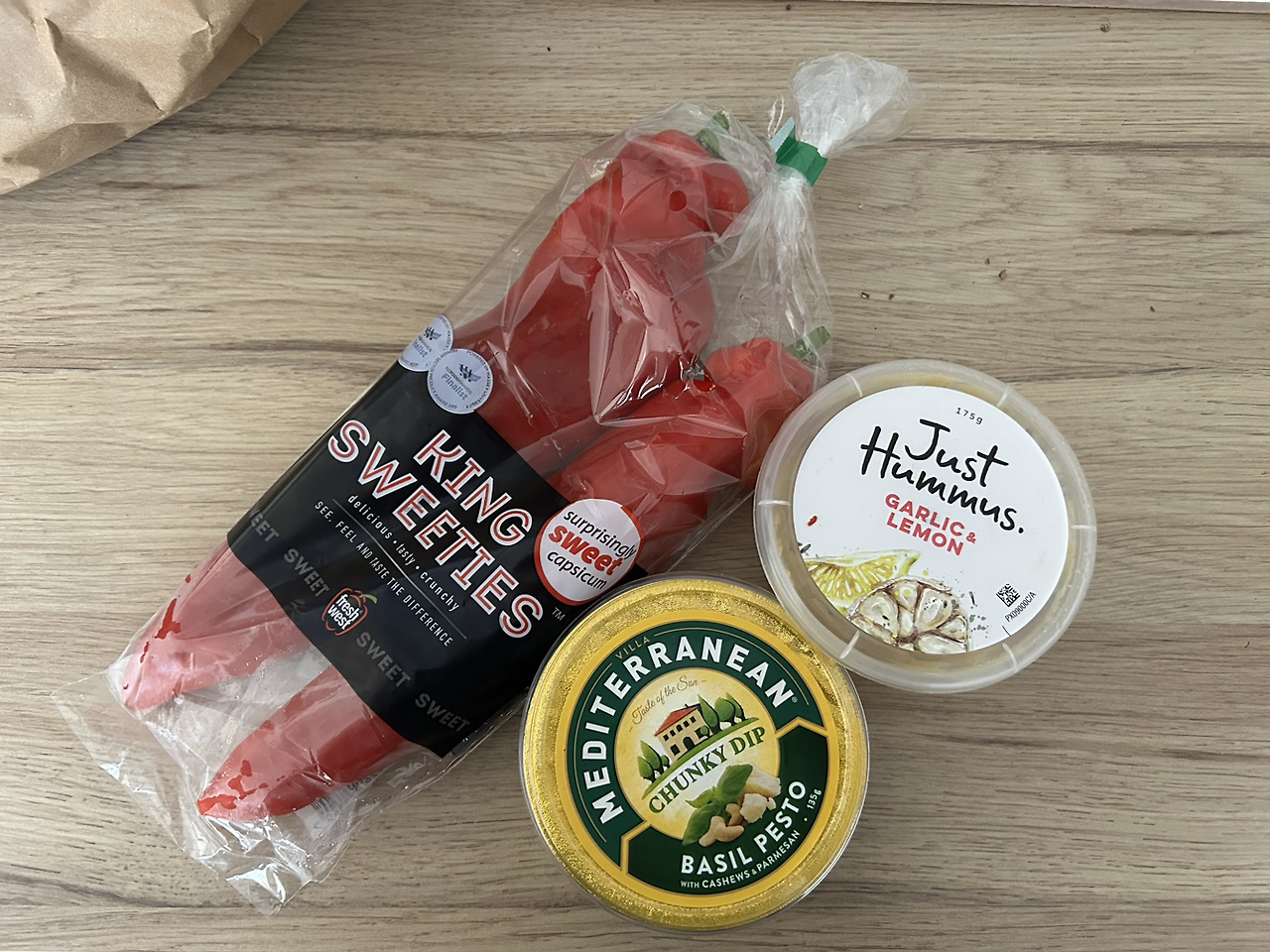 샐러드만으로 좀 부족하다 싶으면 파프리카를 후무스 같은 딥 소스에 찍어 먹는다. 여기에는 동그란 파프리카가 색깔별로 있지만 내가 좋아하는 것은 기다란 파프리카로 현지에서는 캡시칸(Capsicum)이라고 부른다. 캡시칸을 길게 잘라서 이등분해 주고 미니 당근도 절반을 잘라 추가하면 준비 끝. 여기에 취향대로 딥 소스를 찍어먹으면 이 또한 가볍게 건강한 식사나 간식이다. 여기 슈퍼마켓에는 후무스 종류가 브랜드와 맛, 사이즈별로 다양하다. 나는 "Just Hummus"의 갈릭 & 레몬맛, "Lisa's Humus"의 오리지널 갈릭 & 레몬맛, "메디터레니언"의 바질 페스토 제품을 특히 좋아한다. 그래서 세일이라도 하는 날에는 몇 개씩 사다가 냉장고에 쟁여두기도 한다. 한국에서는 아쉽게도 구하기 쉽지 않아서 작년에는 큰 사이즈 한 통을 사가지고 한국에 들어가기도 했다.