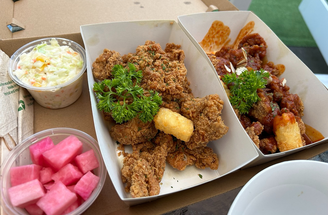 옆집 가족이 포트락 파티를 하자며 저녁 식사에 초대해 줬다. 아직 김밥은 연습이 부족해서 포기하고 K-치킨을 종류별로 구매하기로 하고 타우랑가 시내로 갔다. "Chickent Fryday"의 메뉴를 한참 들여다보다가 “후라이드 치킨, 양념치킨, 간장마늘 치킨 반마리씩 주세요. 그리고 핫도그도 3개 포장해 주세요”라고 주문했다. 옆집 초등학생 아이들이 핫도그를 좋아할 수도 있을 것 같았다. 따끈따끈한 치킨과 핫도그 봉투를 들고 가벼운 마음으로 집에 돌아왔다.