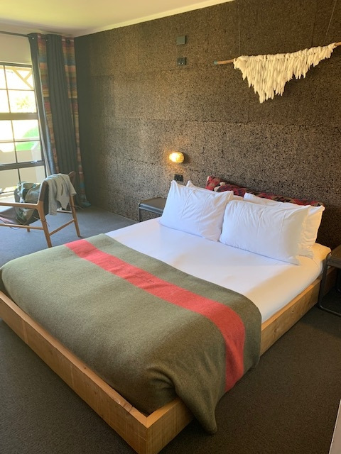 일단 방 안으로 들어서면 인더스트리얼하면서 미니멀한 느낌과 자연과의 조화를 이루는 Earth룩, 그리고 마오리 문화의 잔향이 느껴지는 인테리어가 눈에 띈다. Kia Ora란 제목의 호텔 사용 설명서를 살펴보니 벽면은 이산화탄소를 줄이는 절연 코르크를 벽지 마감재로 사용했고, 재활용 메탈과 목재로 가구와 침대 프레임를 제작했으며 군부대에서 사용했던 담요로 암막 커튼을, 바닥에 깔려있는 카펫은 나일론 그물을, 바닥재는 타이어 고무를 재활용했다고 한다. 이 밖에도 고효율 LED를 사용해 따뜻하면서 에너지 절약이 가능하게 했다. 그리고 TV가 없다. 대신 나를 반겨주는 클래식한 디자인의 라디오에서 흘러나오는 편안한 음악. 그동안 출장과 여행을 숱하게 다녀봤지만 더하지도 덜하지도 않은 Sherwood 호텔룸은 오히려 마음의 안정과 여유를 가져다줘 내 눈과 귀를 즐겁게 해주었다.