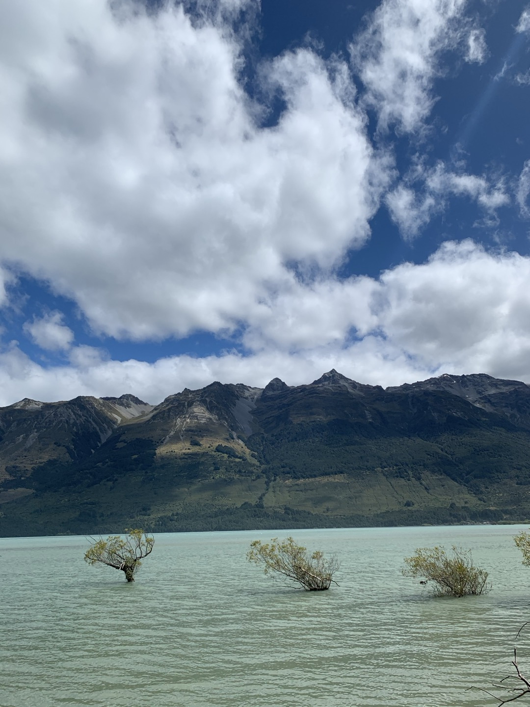 글레노키에서의 2박은 어쩌면 운명이었을까? 끝없는 하늘이 캔버스 마냥 구름과 빛으로 예술의 향연이 가득한 곳이었다. 캠퍼들이 사랑하는 글레노키에는 비영리 형태로 운영되는 글레노키 에코 리트릿 호텔(Glenorchy Eco Retreat)이 있었다. 지금은 더 헤드워터스 에코 로지(The Headwaters Eco Lodge)로 이름이 바뀌었다. 에코 리트릿? 환경에 부쩍 관심이 높은 상태에서 지인의 추천에 아무런 망설임 없이 나는 퀸즈타운에서 글레노키로 가는 미니 버스에 몸을 실었다. 탑승객 다섯 명 중에 중년의 엄마와 청년인 아들을 포함 한국인이 세 명이나 된다는 사실이 놀라웠다. 버스가 열심히 달리는 동안 옆에 앉아있던 백발 미국 할머니와 대화를 하게 되었는데 IBM에서 오래 근무하다 은퇴한 엔지니어라고 자랑스럽게 소개하셨다. 하지만 백인 노인네 특유의 한국에 관한 무지함을 아무렇지 않게 드러내어 내 시선은 자연스럽게 창 밖으로 향했다. 한참을 지나 글레노키에 도착했다.