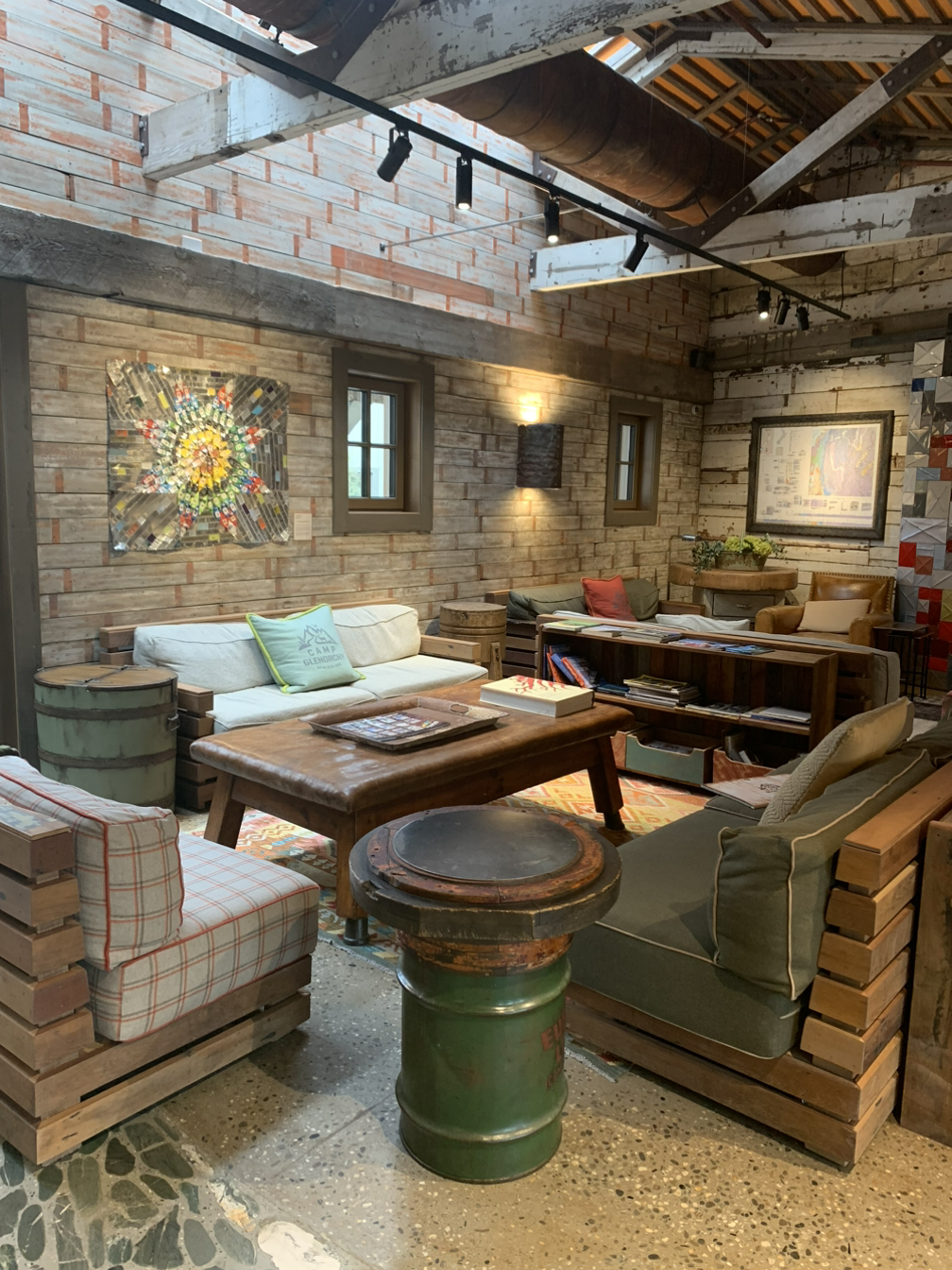 공용주방이 특히 인상적이었는데 오븐을 포함해 세련된 조리시설과 조리도구들, 마트 냉장고처럼 내부를 볼 수 있는 사용자 중심의 구조와 구성이 돋보였다. 특히 커다란 조리식탁이 마음에 들었다. 나중에 내 집 마련을 한다면 이렇게 넓은 식탁과 주방을 갖고 싶다는 생각이 들 정도로. 호텔에 투숙하는 분들의 요리 재료 취향도 살짝 볼 수 있었는데 (이름이 붙어있어서) 신선한 채소와 과일, 치즈, 빵 종류, 와인 등이 냉장소와 테이블 위에 잘 정리되어 있었다. 조식이 제공되는 식당에는 밝은 색상의 원목 테이블과 의자가 놓여있었고 청결하면서 안락한 느낌을 주었다. 공용 라운지에는 우드월에 편안해 보이는 가죽 소파 위로 업사이클링 작품들이 걸려있었다. 서부영화에서 본듯한 거실 느낌이란 인상을 받았다. 전반적으로 밝고 즐거운 바이브가 느껴지는, 이런 바이브를 제공하는 고객 중심의 기분 좋은 곳이었다.