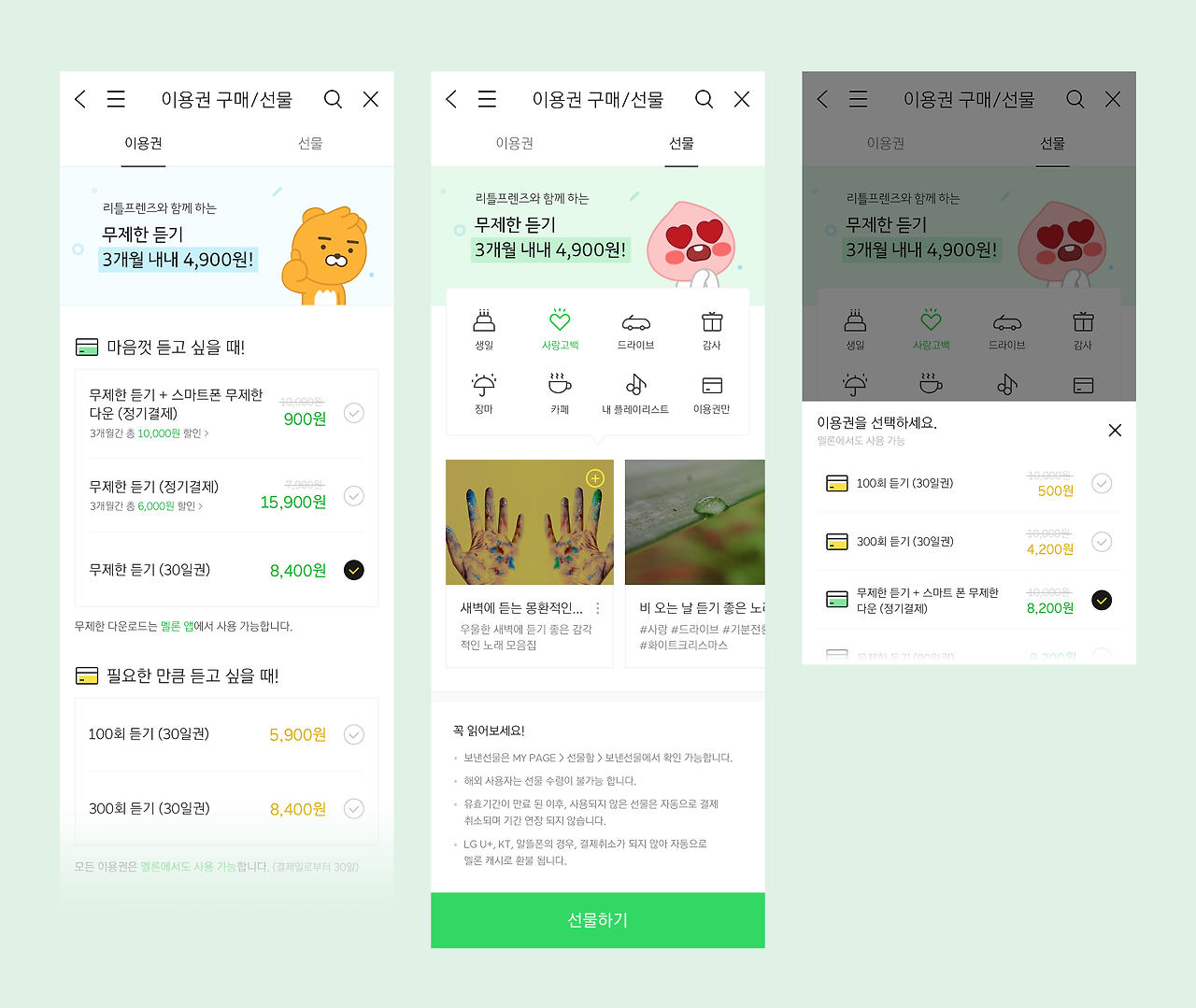 카카오 멜론 선물함, 이용권 개편 스토리